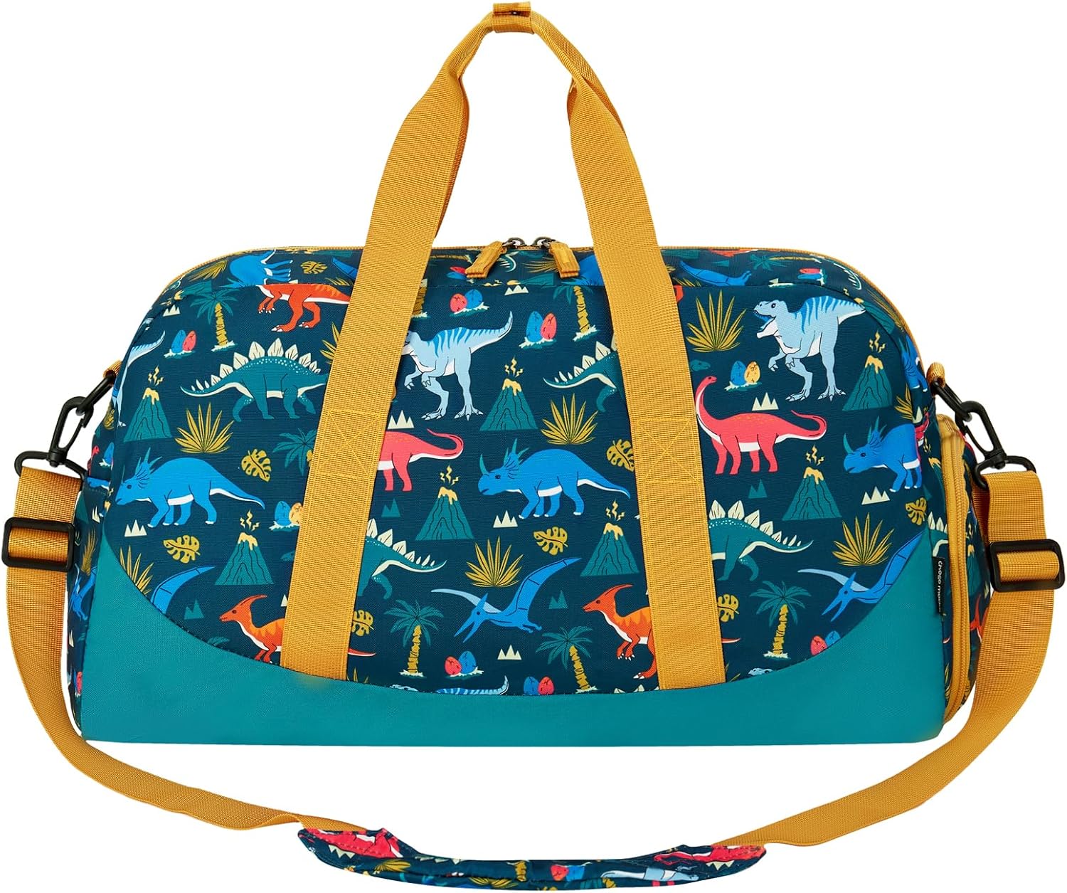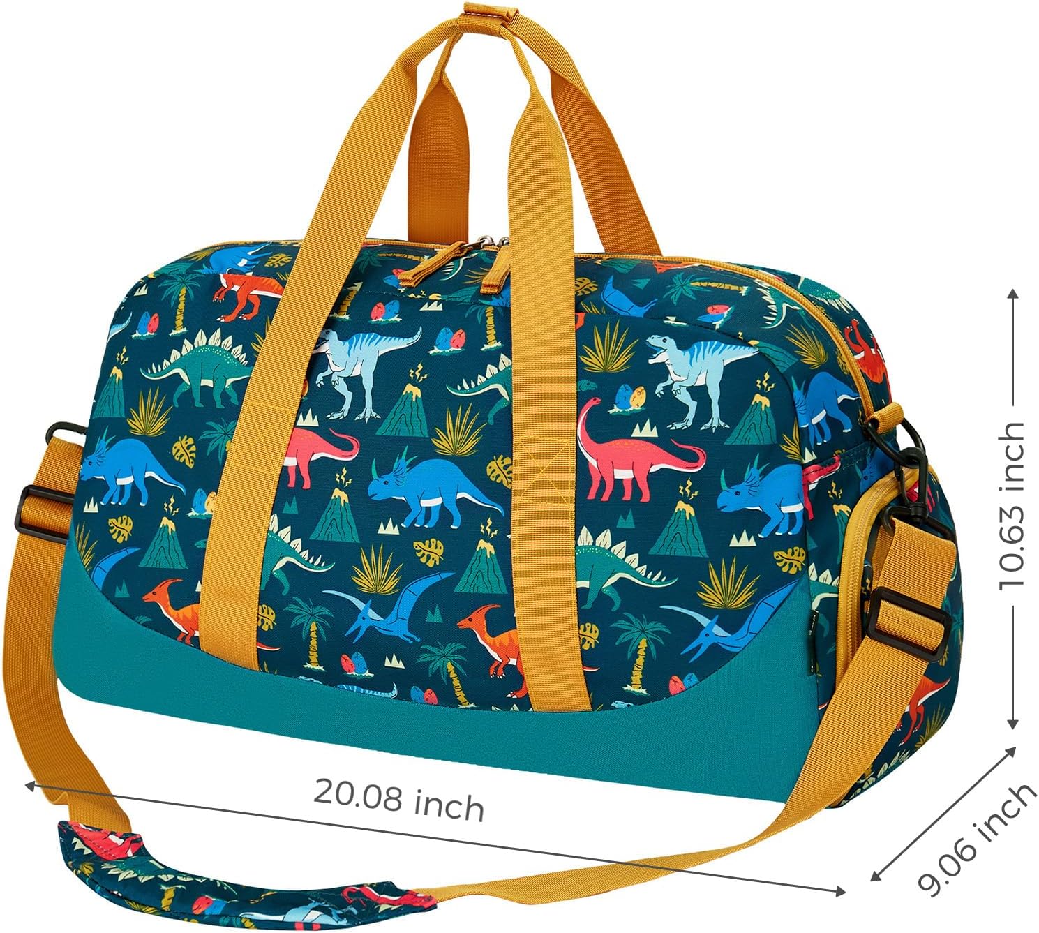 Choco Mocha Kids Duffle Bag Boys - Dinosaur Weekender Overnight Bags for Boy, Dark Green