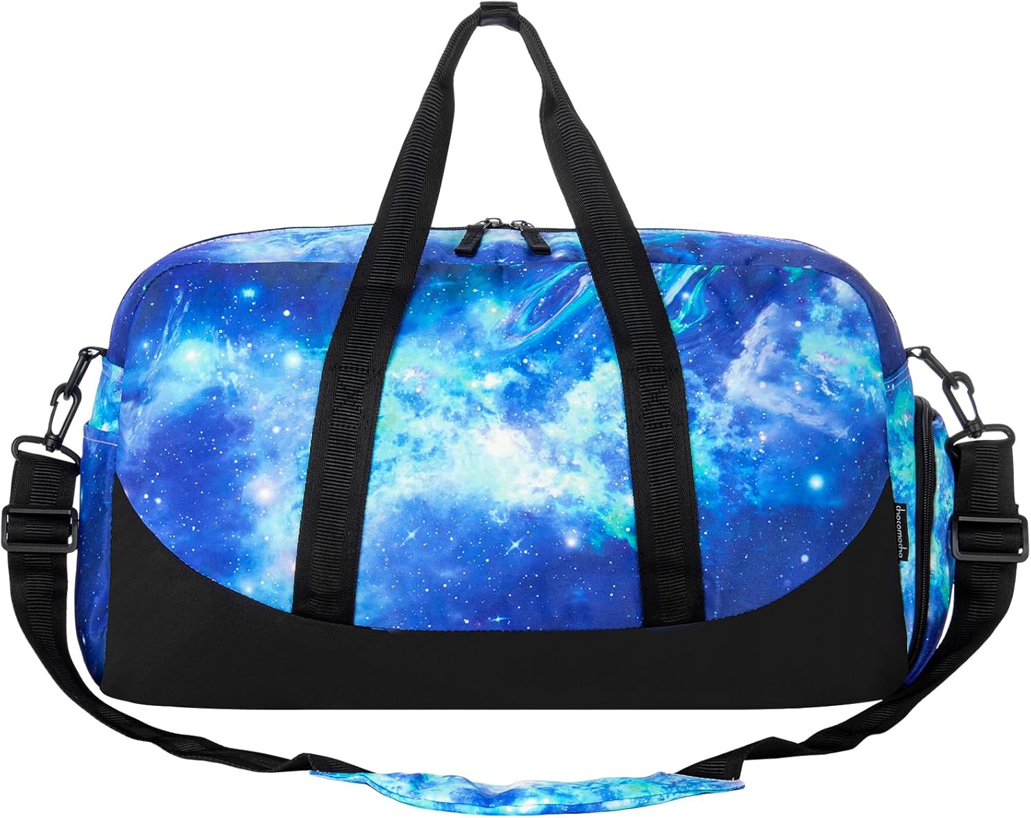 • Kids duffle bag, 20.08x9.06x10.63inches, roomy shoe pocket, helps protect your kids belongings stay separate and clean