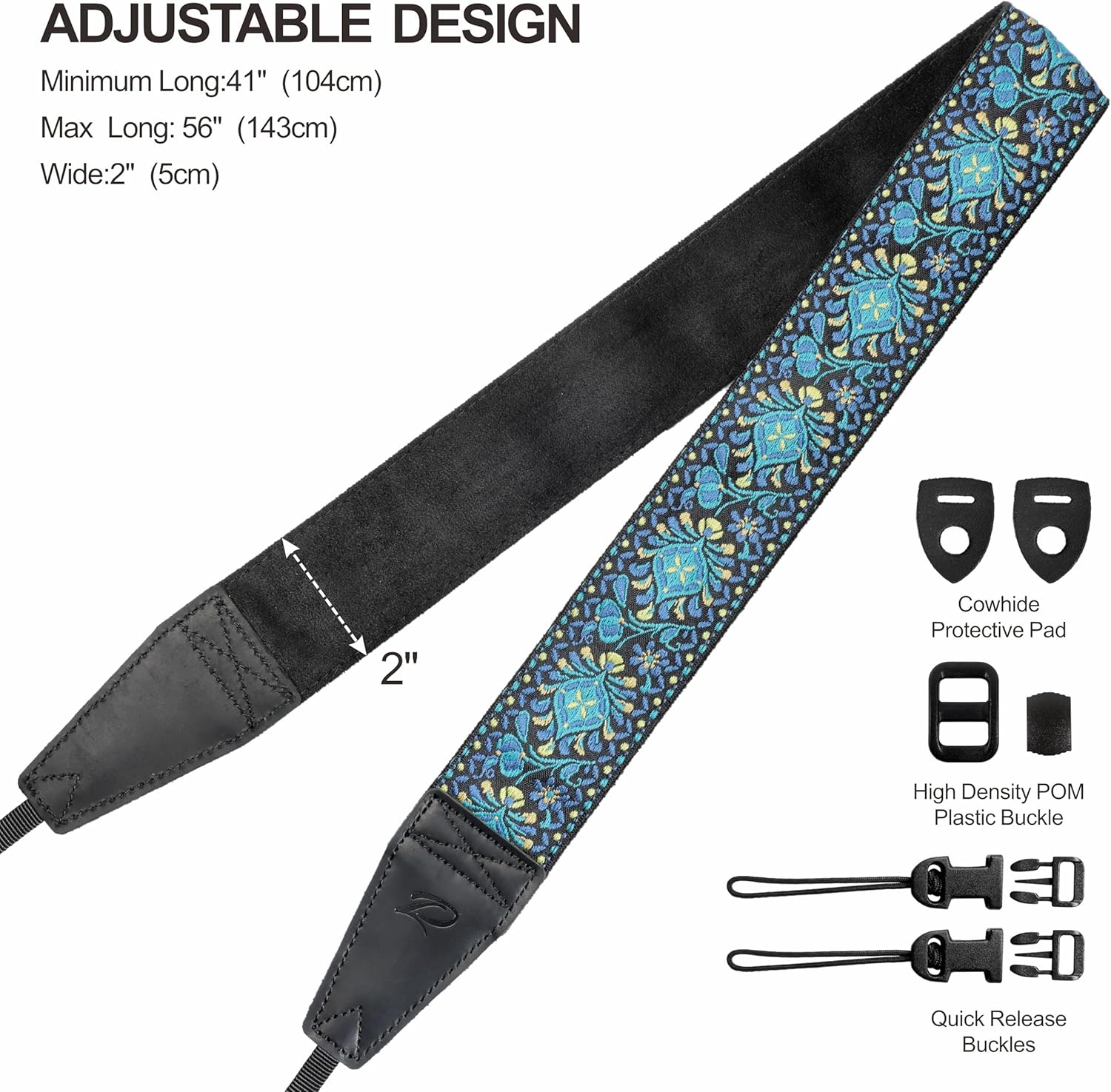 • 📷ADJUSTABLE - The camera strap adopts an adjustable design, camera strap measures a Minimum 41”(104cm)Long,Max Size: 56”(143cm)Long,2”(5 cm)Wide,can be adjusted as needed. The wide, comfortable cotton strap will sit perfectly without slipping. Plus, , even when you’re doing an all-day photo shoot with a heavy camera and lenses!It will also make your neck and shoulders more comfortable.