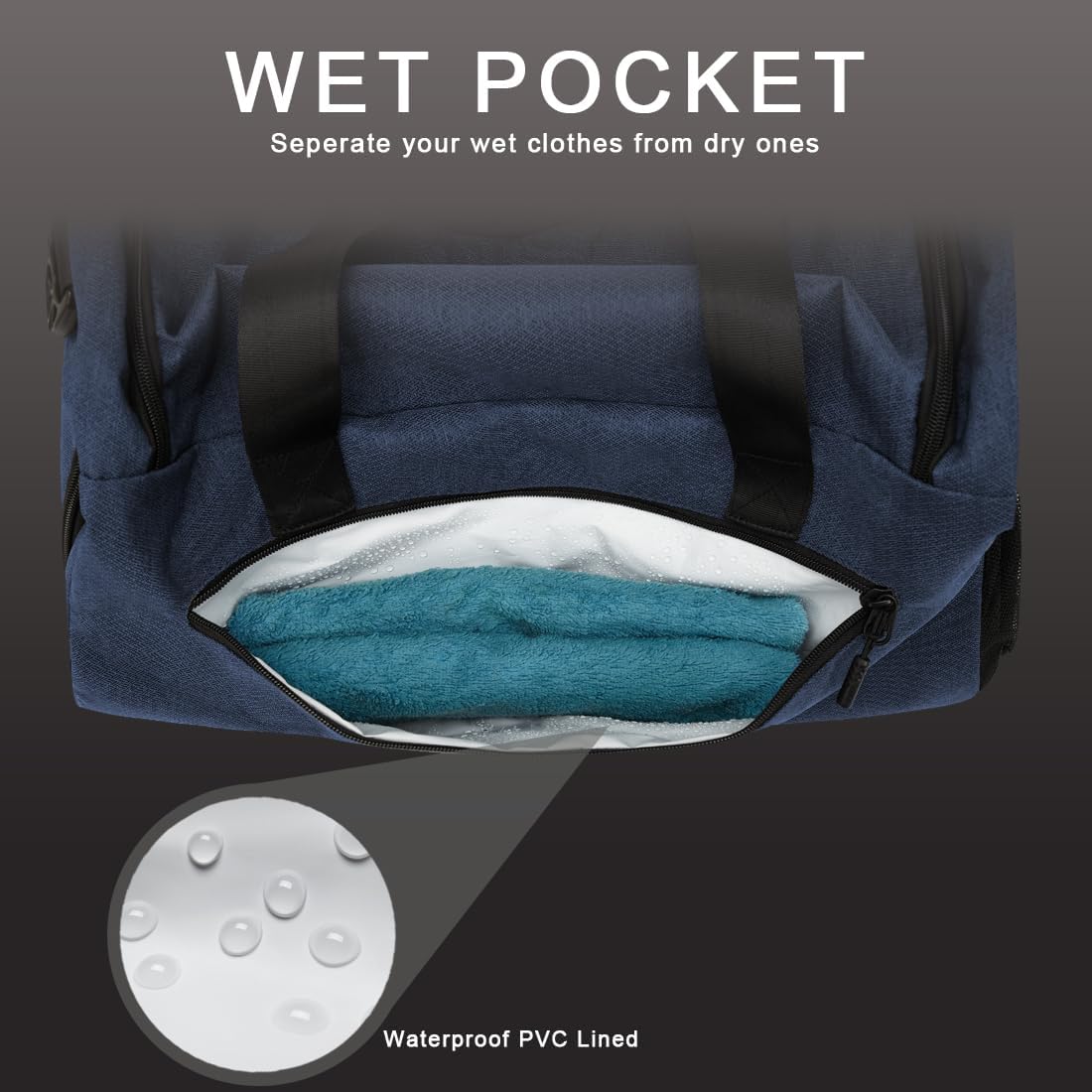 • DRY & WET SEPARATION: The gym bag for men is well thought out with a dry & wet compartment separation. It uses waterproof PVC lined with smooth zipper closure, good for storing wet clothes and swimsuits. Workout will be a breeze with this gym bag.