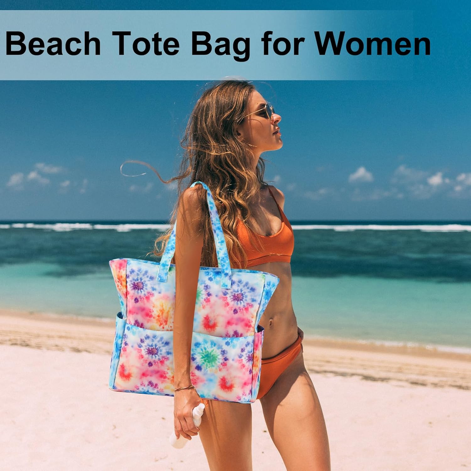 LEDAOU Beach Bag Waterproof Sandproof Women Tote Bag Pool Bag with Zipper for Gym Grocery Travel with Wet Pocket