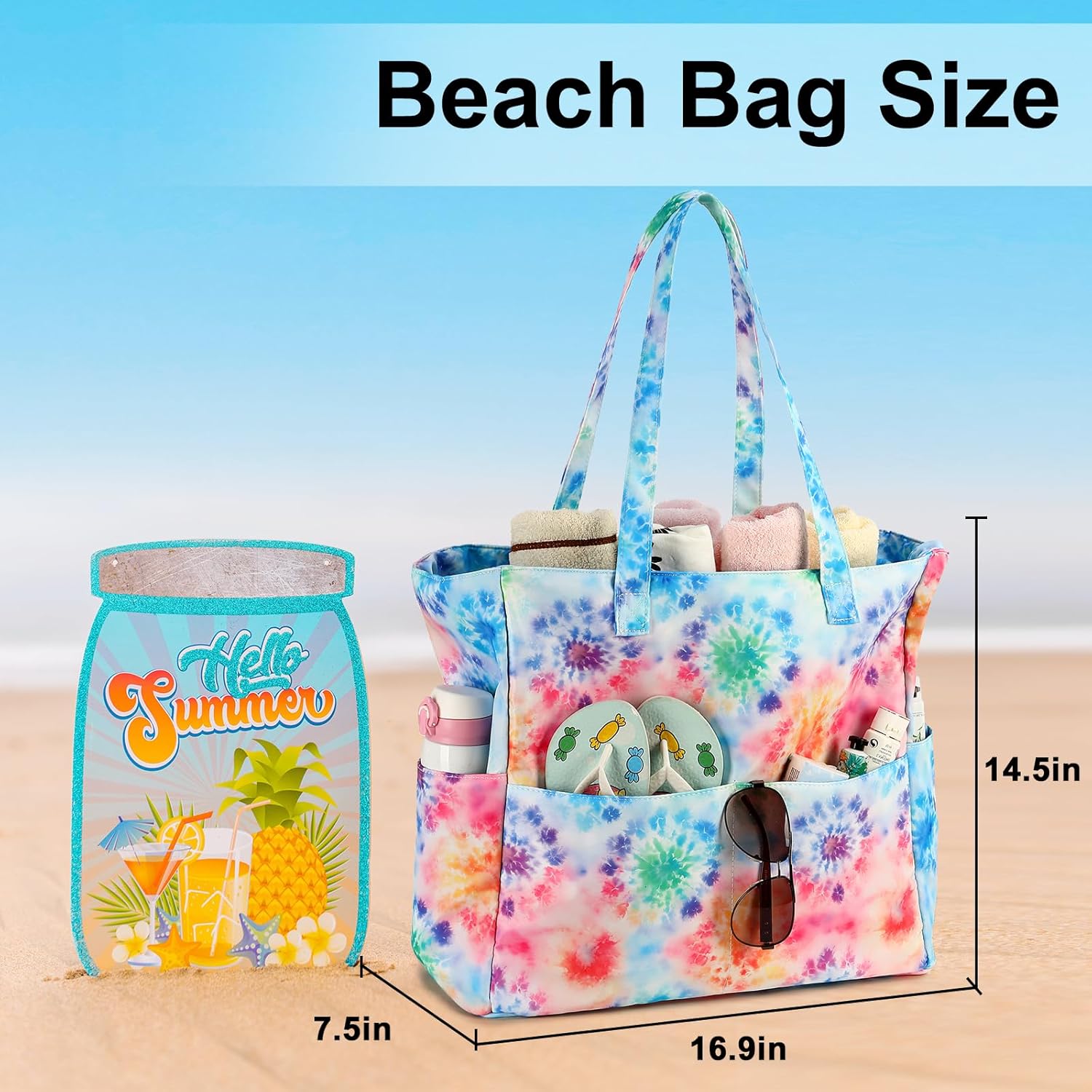 • Beach Tote Bag feature a zipper closure to keep your necessities secure, while round handles make for easy carrying.With 8 inch drop handles this bag can be held by hand or on your shoulder for ease of comfort!