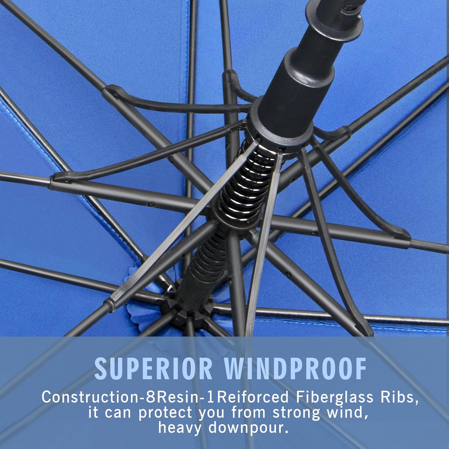 • PERFECT COMPANION: The fashionable and big golf umbrella for rain can be installed on the golf cart to start an elegant golf activity.The heavy duty golf umbrella can also accompany you to an important business event to show a mature,low-key and tasteful life.Simple and luxurious large umbrella is the perfect companion for daily travel life