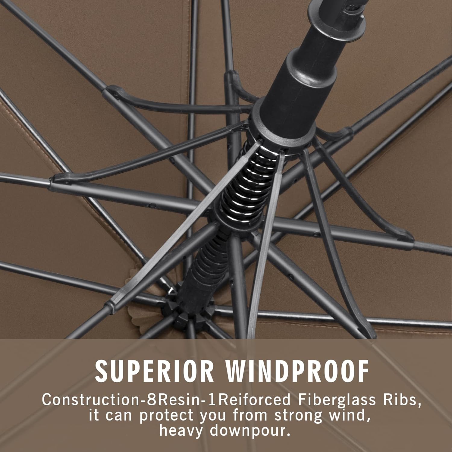 • TOUGH AND STRONG DOUBLE CANOPY GOLF UMBRELLA: The extra large golf umbrella is made of glass fiber with high toughness,which is strong.The golf umbrella double canopy vent design is adopted to weaken the wind and resist strong wind.Our golf push cart umbrella is like a tall and straight tree,standing upright with a waist pole,standing in the wind and rain with tenacious vitality,and welcoming wind and rain with the best posture