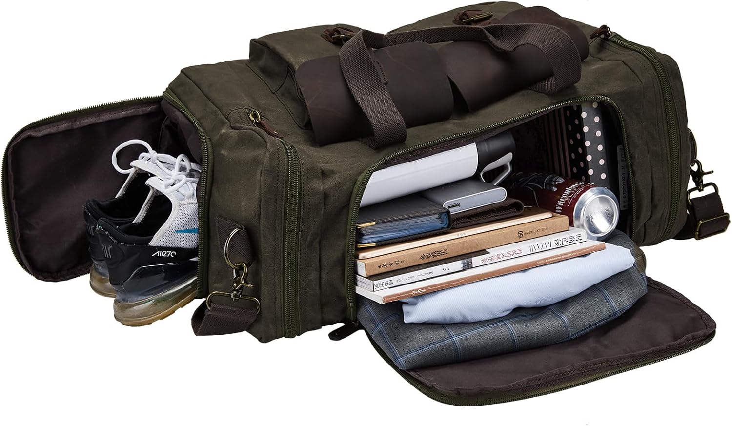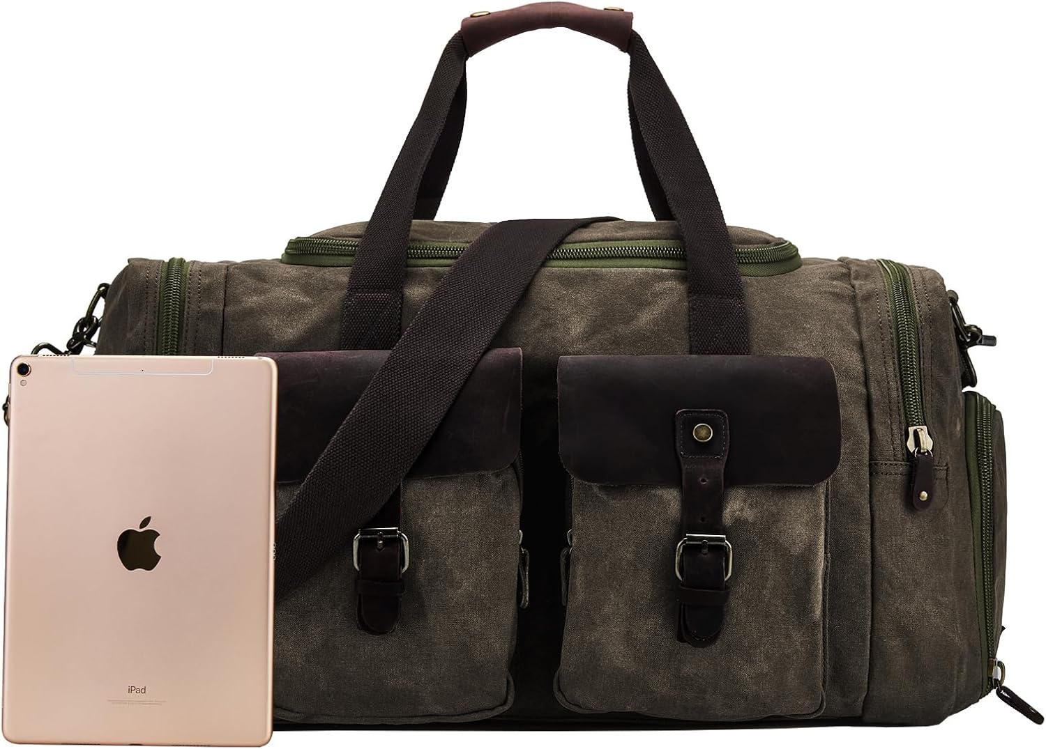 Waxed Canvas Vintage Overnight Duffel Weekend Travel Bag Waterproof For Men Women with Shoes Compartment(olive green)