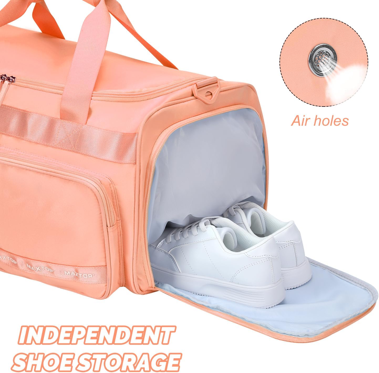 • Independent Shoe Compartment:Independent shoe compartment on the side, you can store one or two pairs of shoes or dirty clothes. Equipped with air holes, convenient and practical, do not have to worry about odor stagnation.