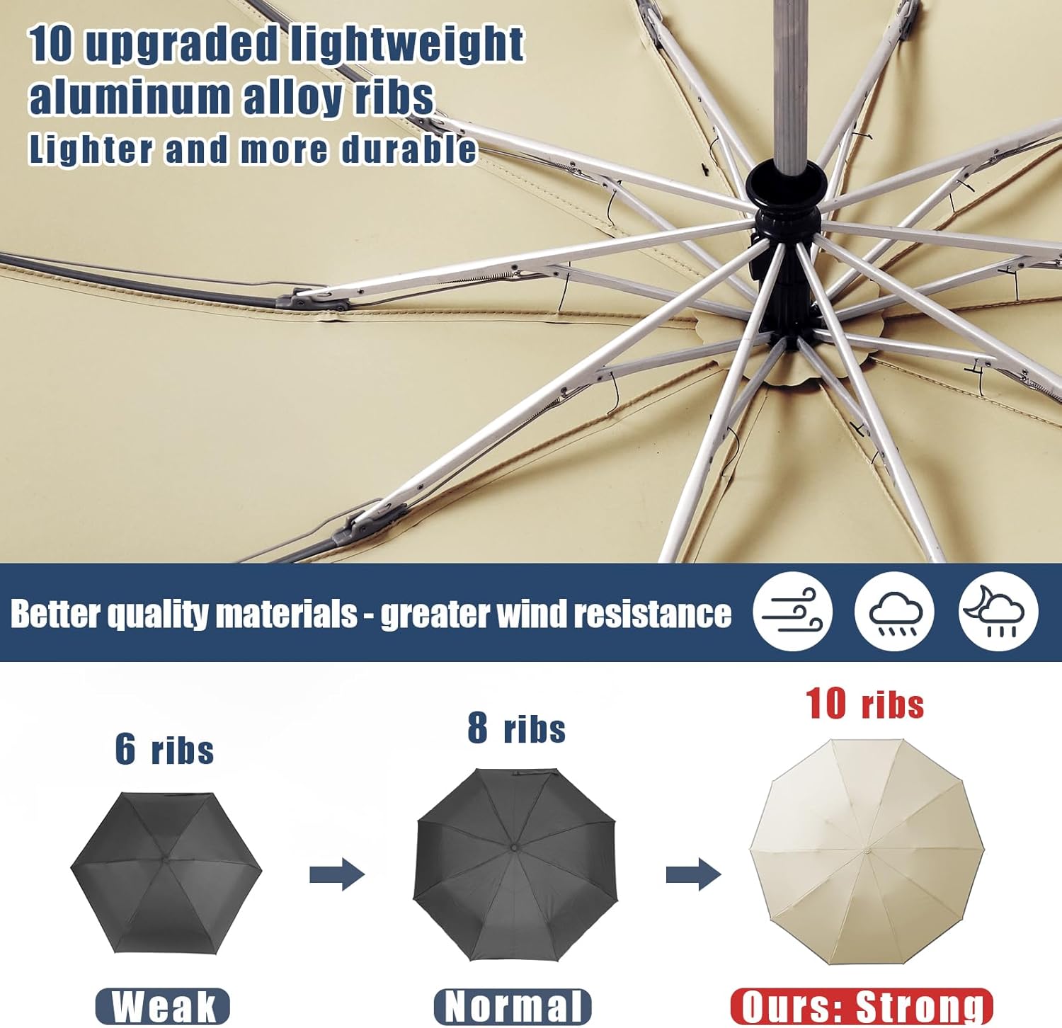 • Windproof ribs: We increased the number of ribs to 10, providing stronger support (windproof). The material of the ribs was upgraded from iron alloy to aluminum alloy, which is lighter and more durable