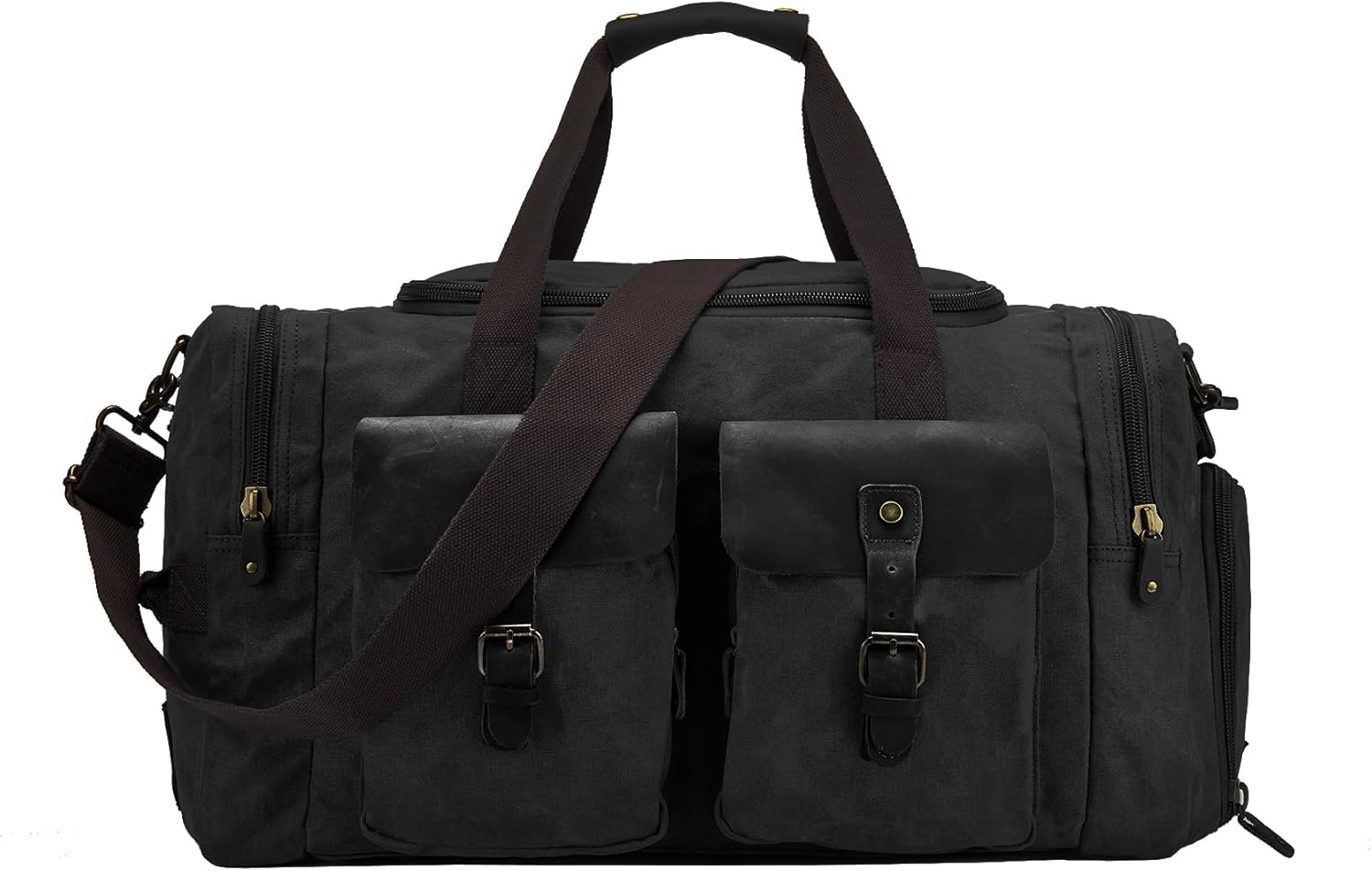 • 【Premium Quality Material】This duffel bag is made of waterproof durable canvas and top quality genuine crazy horse leather trim.The premium quality ensure the long lasting durability.The high density canvas is made of pure cotton, crafted with a tight double-knit weave,it's strong, hard-wearing, scratch-resistant. The crazy horse leather is made of high-end top layer cowhide material, with a thickness of 2.5mm, which is solid and durable.And the quality solid hardware won’t gather rust easily.