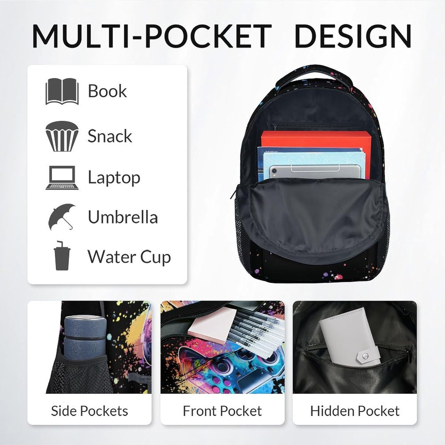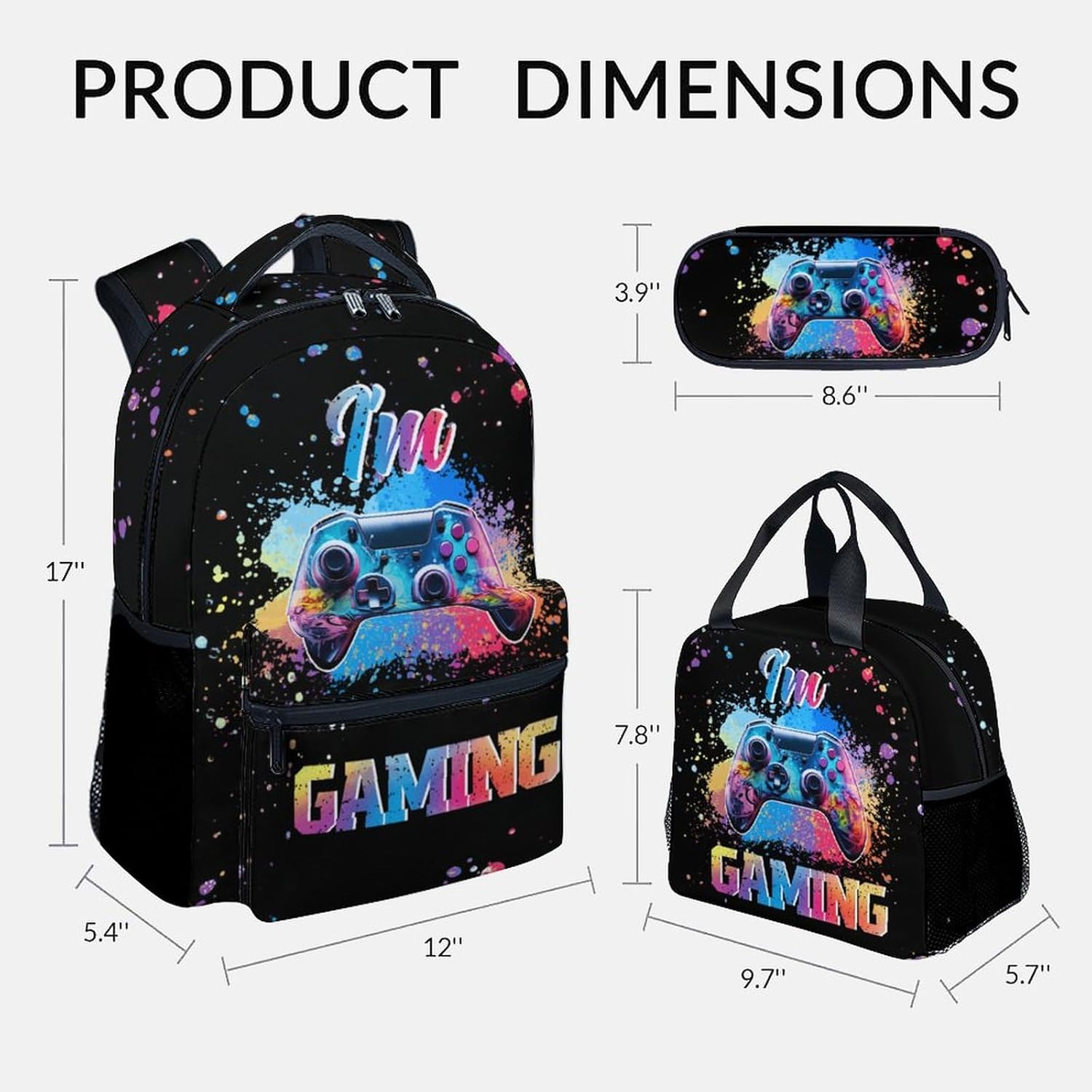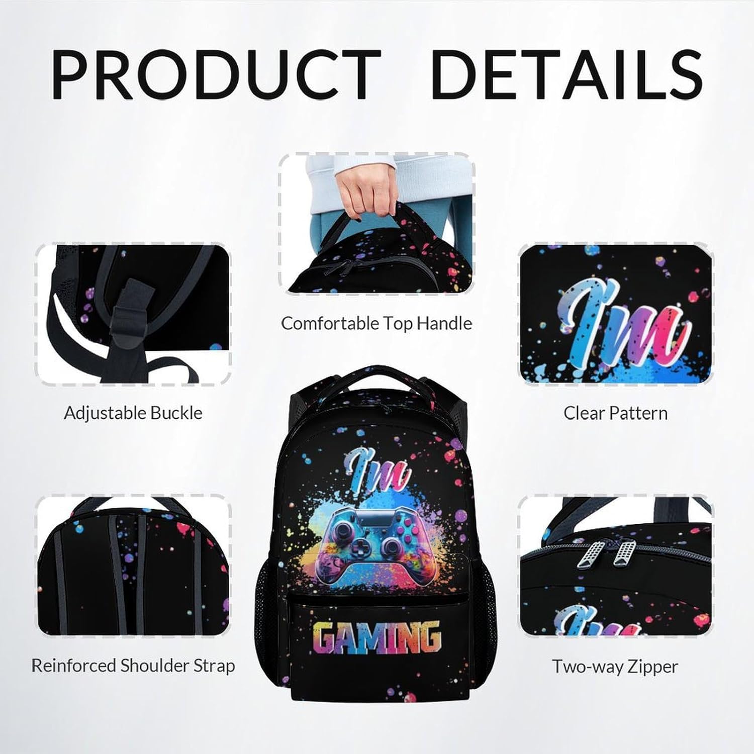 COZYAURA Kids Backpack with Lunch Box - Graffiti Video Gamer Backpack for School - Lightweight Black Gaming Backpacks for Boys