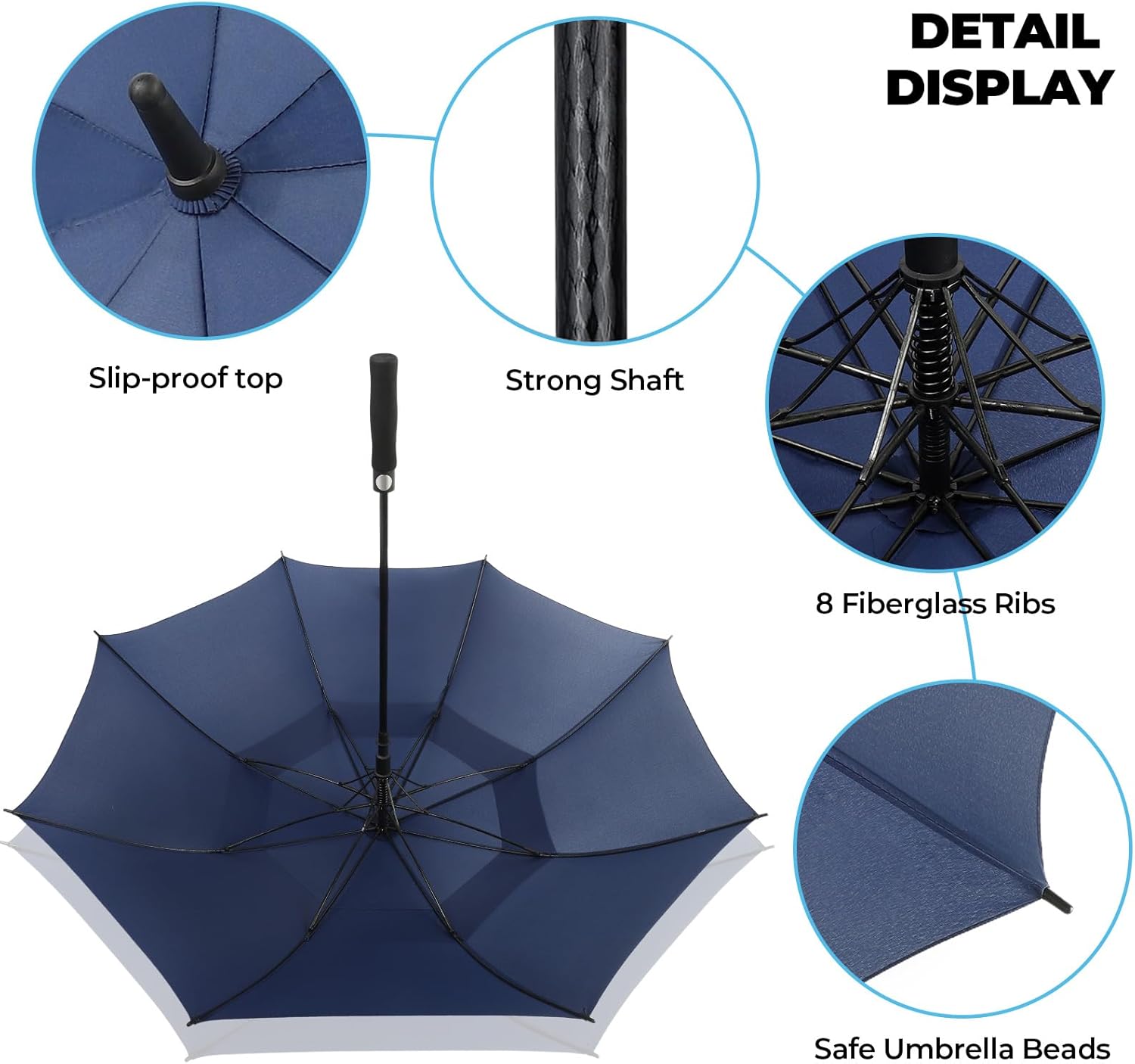 • AUTOMATIC OPEN WITH EVA HANDLE: This large golf umbrella opens instantly with a press. Quick and smooth deployment ensure you stay dry in sudden rain. The non-slip EVA handle of this golf umbrella for rain provides reliable comfort during long use.