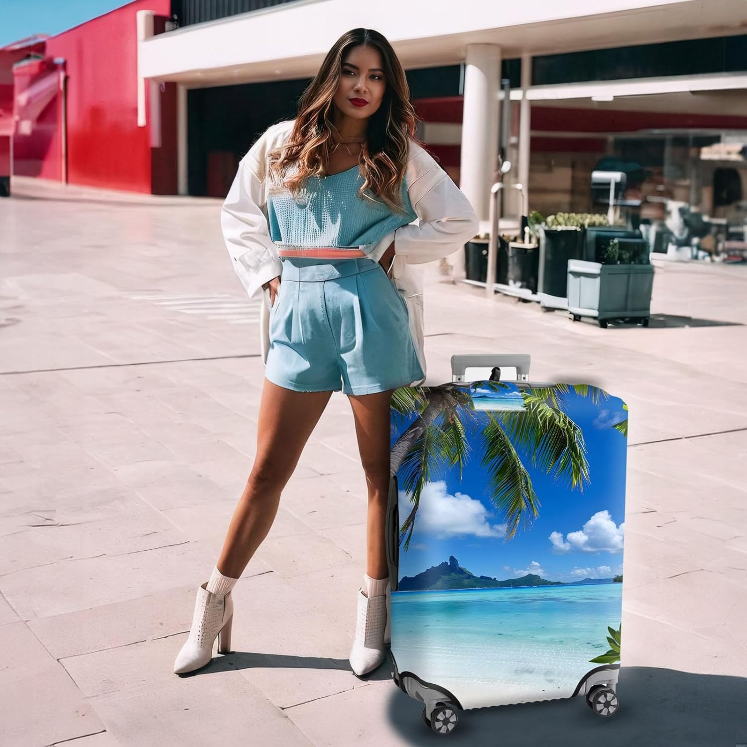 Travel Luggage Cover,Beautiful BeachTheme Suitcase Cover Accessory Kit, Luggage Tag, and Comfortable Luggage Handle Wrap, Washable Luggage Suitcase Protector (25-28 inch,L)