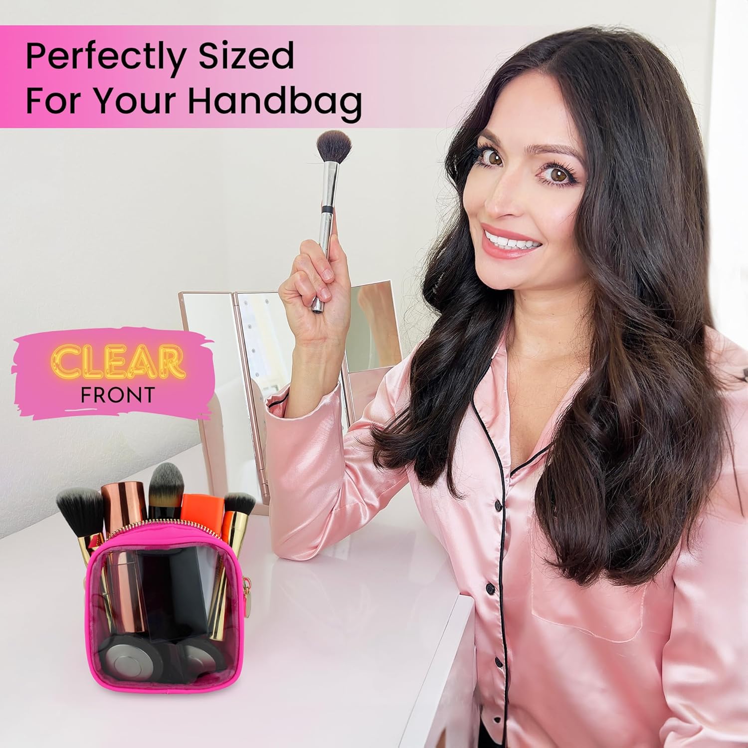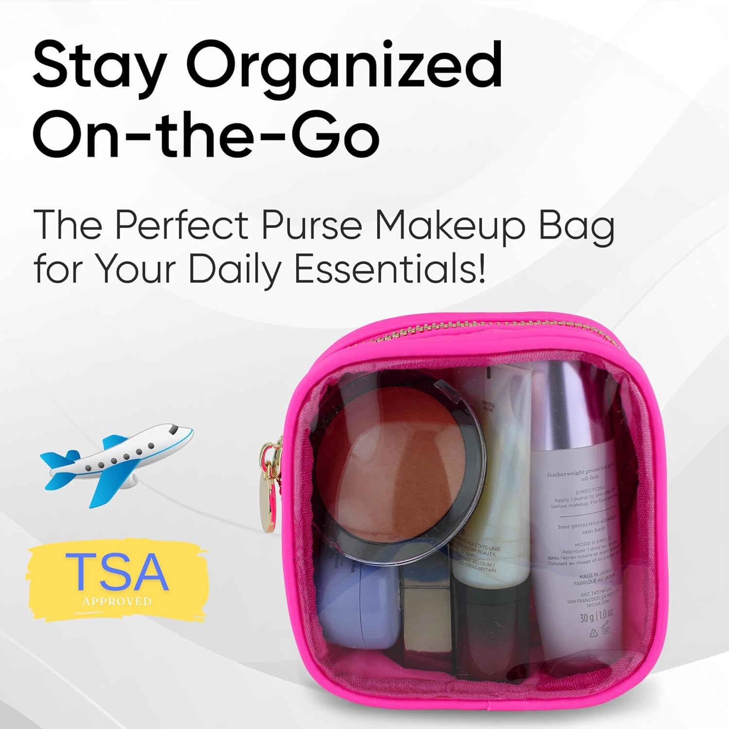 DANCOUR Clear Mini Makeup Bag for Purse Small Cosmetic Pouch Travel Case Transparent Toiletry Organizer Portable Clear Pouch Hot Pink