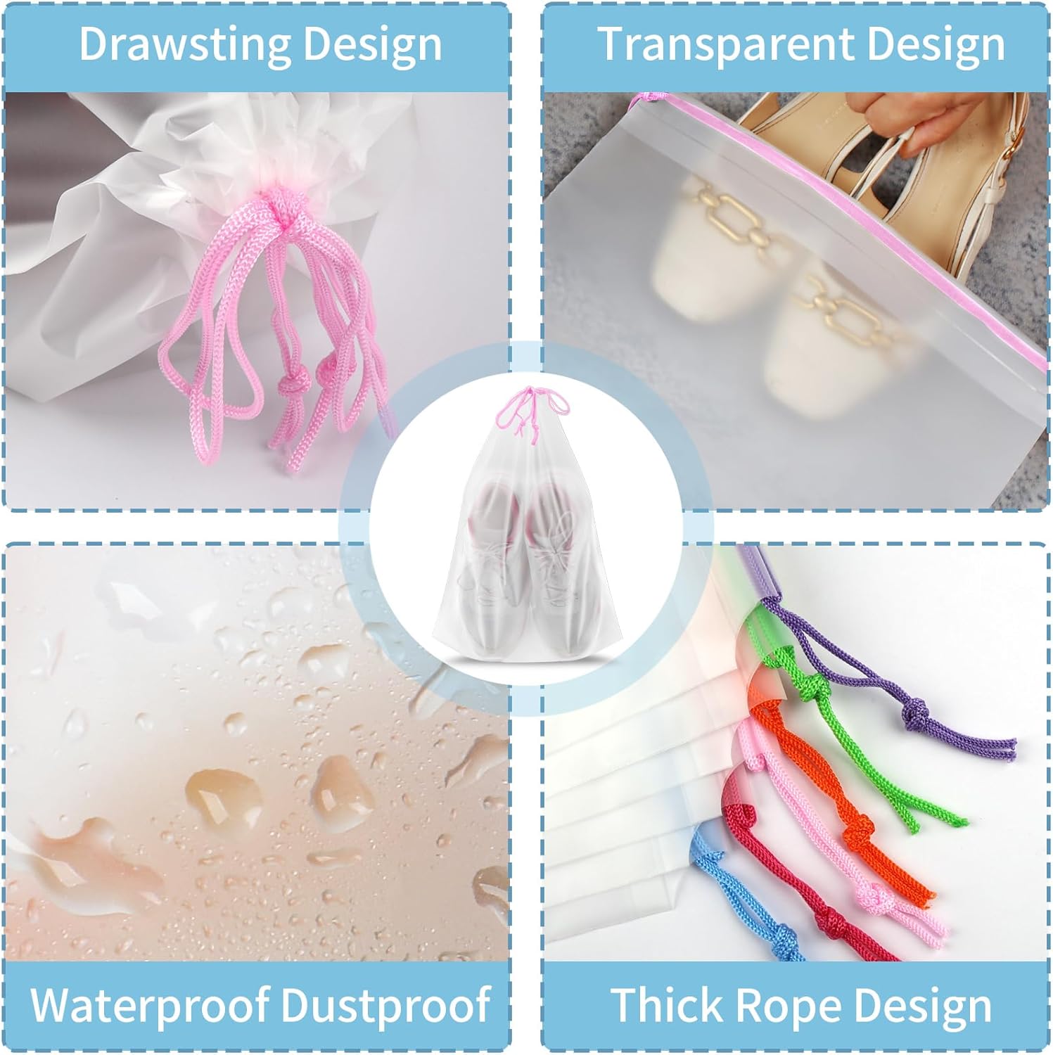 18 Pack Shoe Bags for Travel, 15.7" x 11.8" Clear Travel Shoe Bags for Packing with Colorful Drawstring, Large Waterproof Portable Travel Shoe Storage Bag Travel Essentials Women for and Men