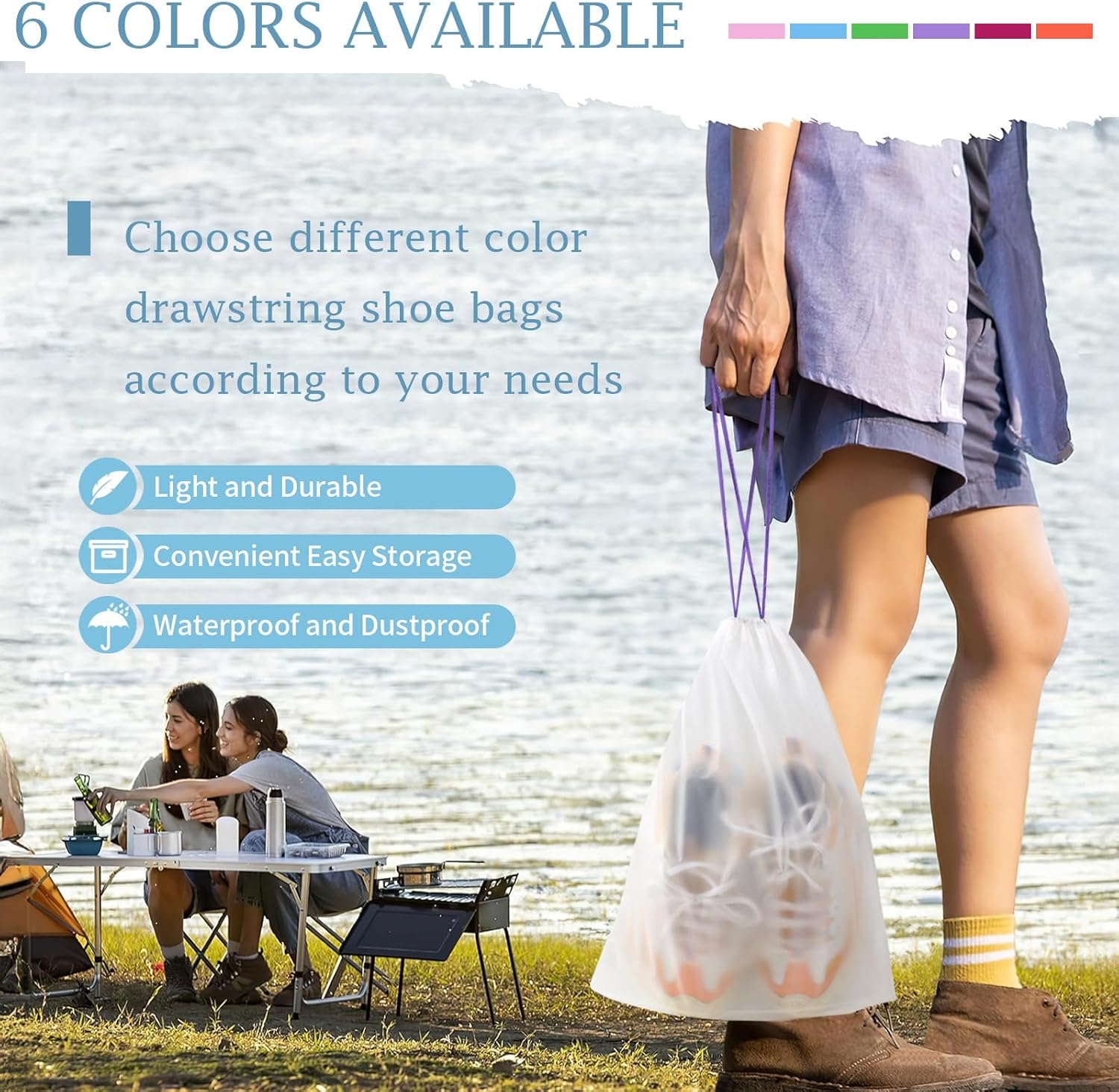 • Upgrage Craftsmanship! Premium Material: Our travel shoe bag is made of reusable waterproof PE material. The travel shoe bags are not easy to break, avoiding travel worries. Convenient colorful drawstring design for easy hanging and quick organization