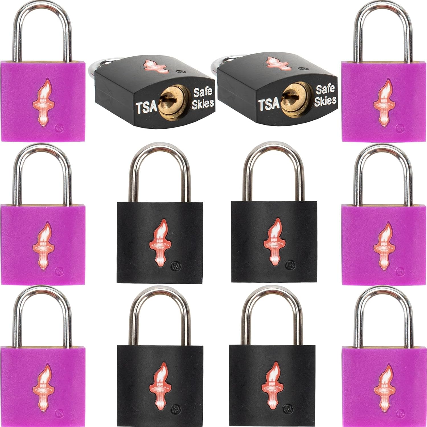 12 Pack 11/12 Inch Wide TSA Luggage Lock for Suitcases, Gun Cases & Travel Bags - Solid Brass Security Lock with Color Shell (12 Colors: Black/Juice)
