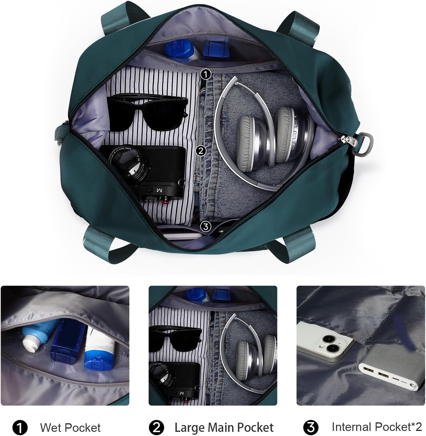 Travel Duffel Bag, Sports Tote Gym Bag, Shoulder Weekender Overnight Bag for Women