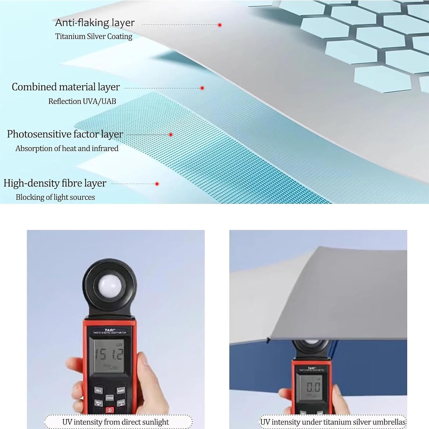 • 【Both a parasol and shedrain umbrella】The uv blocking umbrella is made of high-density waterproof material, which can be used as a large umbrellas for rain. There is also a composite material layer that can reflect UVA/UVB, and a light-sensitive factor layer that can absorb heat infrared rays, which is also a sunscreen big umbrella.