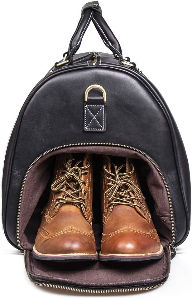 Leather Travel Luggage Bag, Mens Duffle Retro Carry on Handbag(Black, 24 Inch)