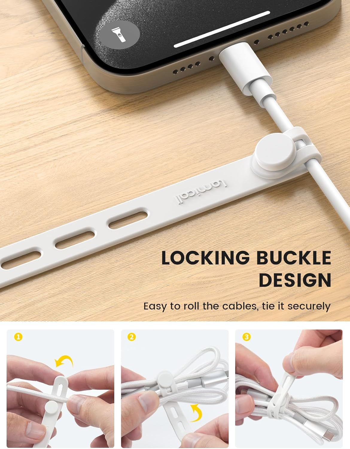 10Pack Silicone Cable Ties Cord Organizer - Lamicall Elastic Wire Ties Management, Travel Must Haves, Halloween Desk Home Office Workspace Accessories, Dorm Room Essentials, White Cable Keeper