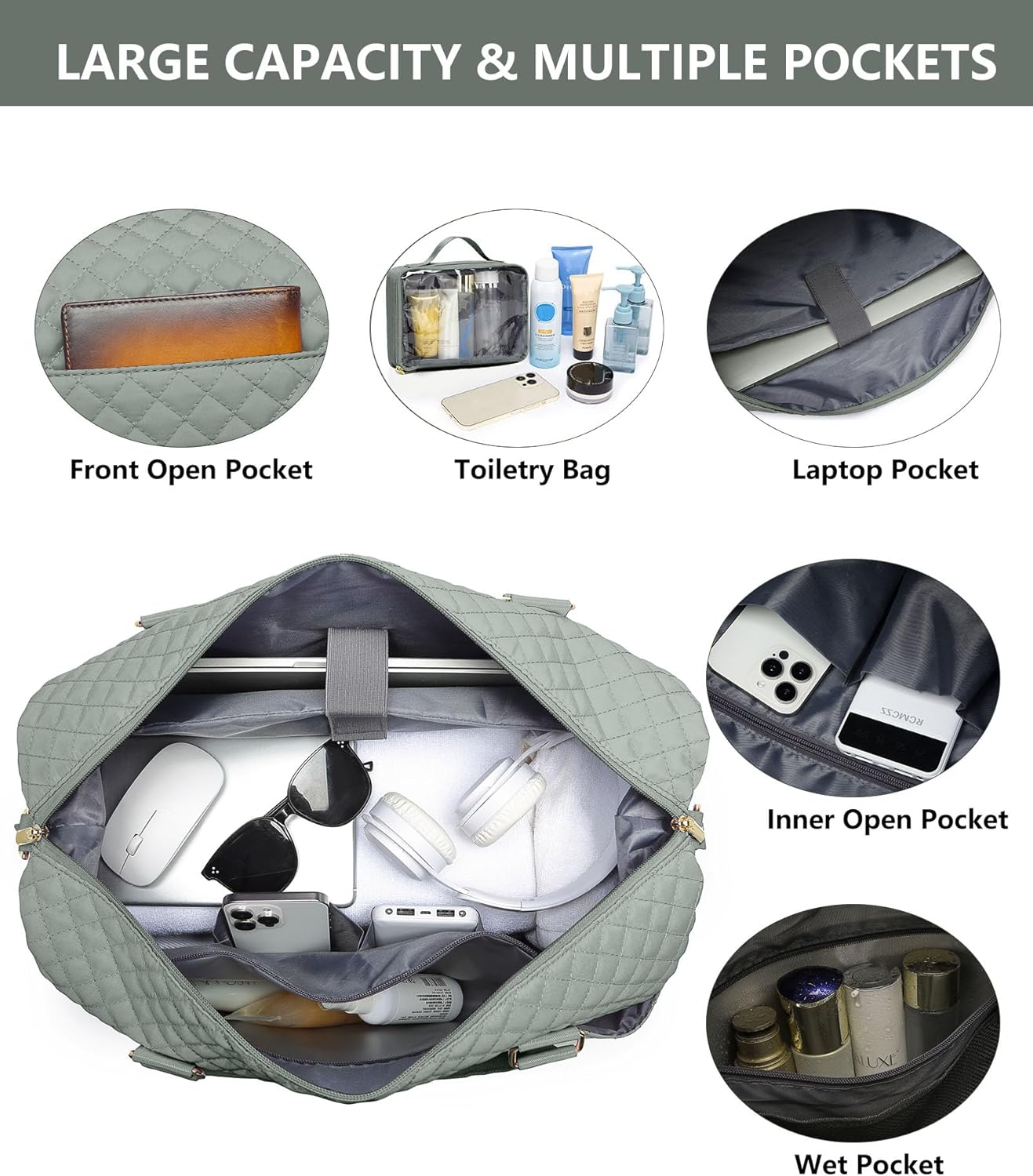 Weekender Bags for Women Duffle Bag - Travel Duffel Bag with Shoe Compartmen Carry on Overnight Bag with Toiletry Bag Gym Tote Bag with Wet Pocket Hospital Bags for Labor and Delivery Green