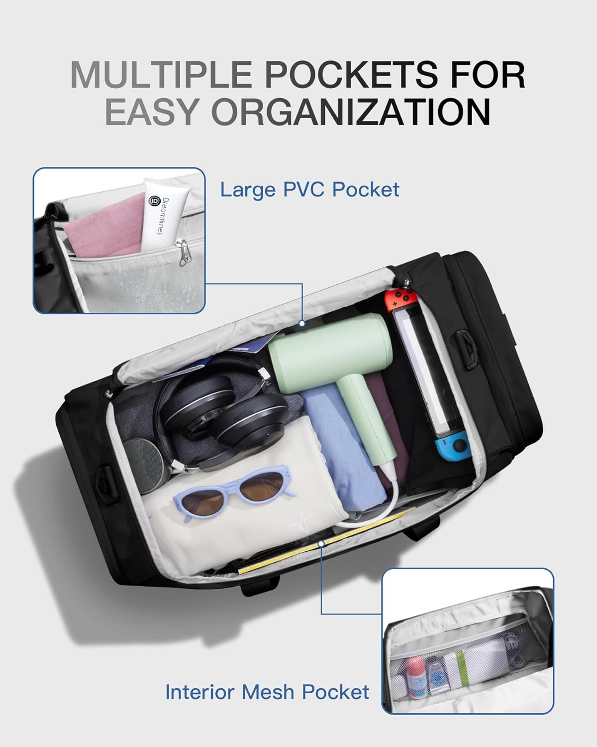 • Dry Wet Separate Duffel Bag: This duffle bag for women offers a spacious main compartment to store your clothes and items. A zippered waterproof PVC lined pocket for wet clothes. Great for swim practice or sweaty gym clothes.