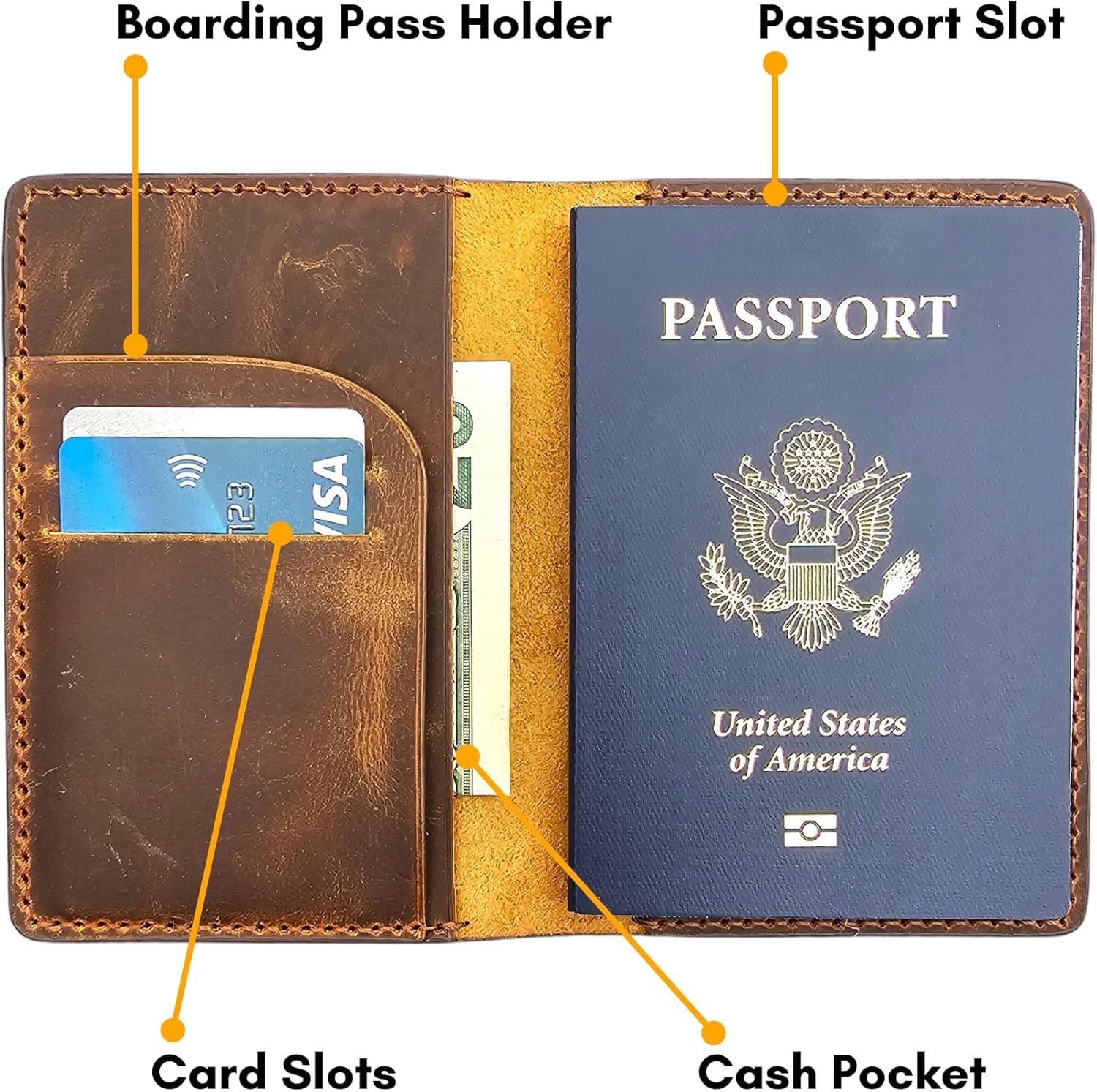 Leather Passport Holder for Men and Women - Handmade Vintage Travel Wallet - Mens Passport Case with Card Organizer - Genuine Leather Passport Cover - 2 Card Slots (Style A)