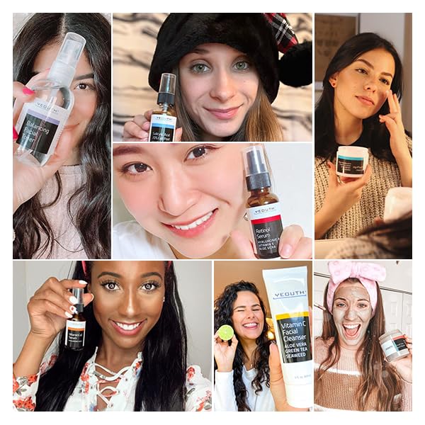 • Total Skincare Set: YEOUTH Vitamin C Cleanser, Face Toner, Vitamin C Face Serum, Retinol Serum, Face Cream, Face Peel & Face Mask. Owned by a Cosmetic Chemist. Dermatology Tested. Enjoy a complete skincare routine from YEOUTH!