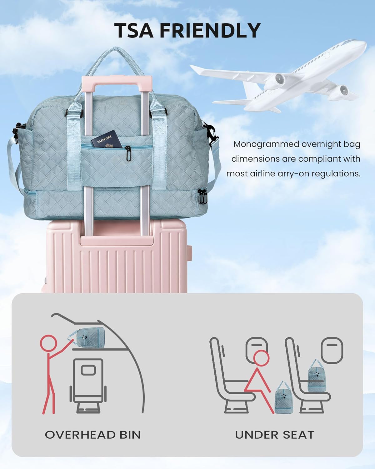 • 【Initial Weekender Bag&Cosmetic Bag】Our weekend bag stands out from the market with personalized letters, allowing you to choose the initial of your name or give it as a thoughtful gift to others. Our initial travel bag comes with a cosmetic bag for storing your makeup/toiletries.