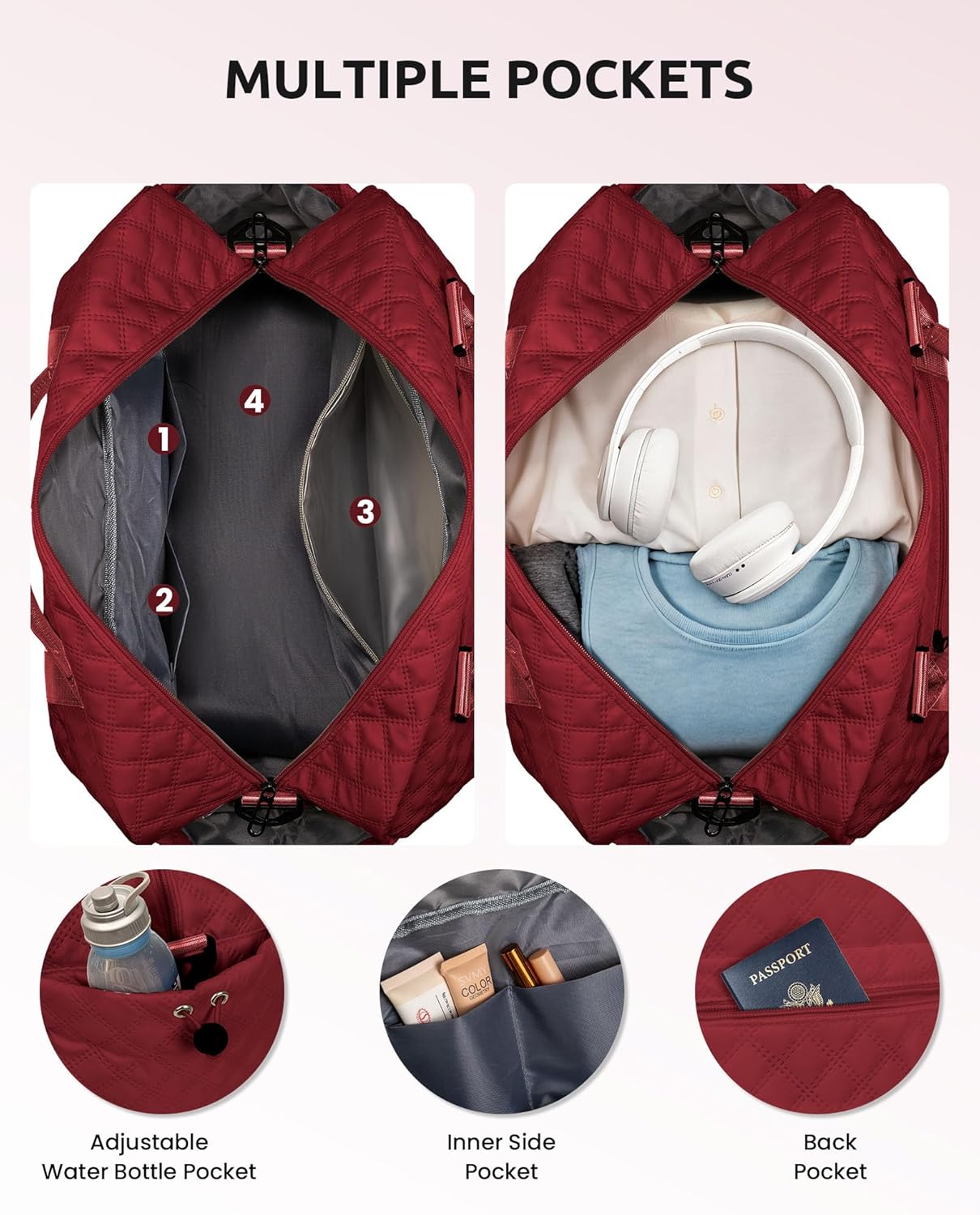 • 【Initial Weekender Bag&Cosmetic Bag】Our weekend bag stands out from the market with personalized letters, allowing you to choose the initial of your name or give it as a thoughtful gift to others. Our initial travel bag comes with a cosmetic bag for storing your makeup/toiletries.