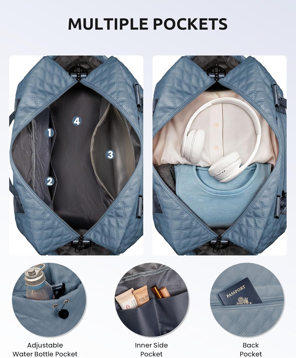 • 【Duffel Bag with Shoe Compartment】This letter personal item Bag has a separate bottom compartment for storing your shoes or dirty clothes, keeping them separated from your clean clothes during travel.