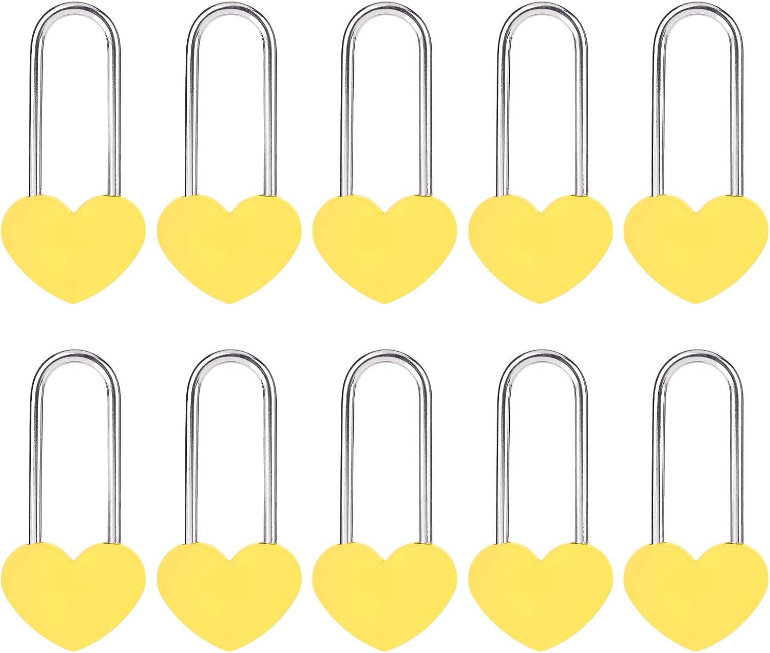 10PC 3.5" 50mm Love Lock Heart Padlock,Yellow Single Heart Wish Lock for Lovers Wedding,Valentines,Anniversary,Travel, Valentines Day, Bridge(NO Key)