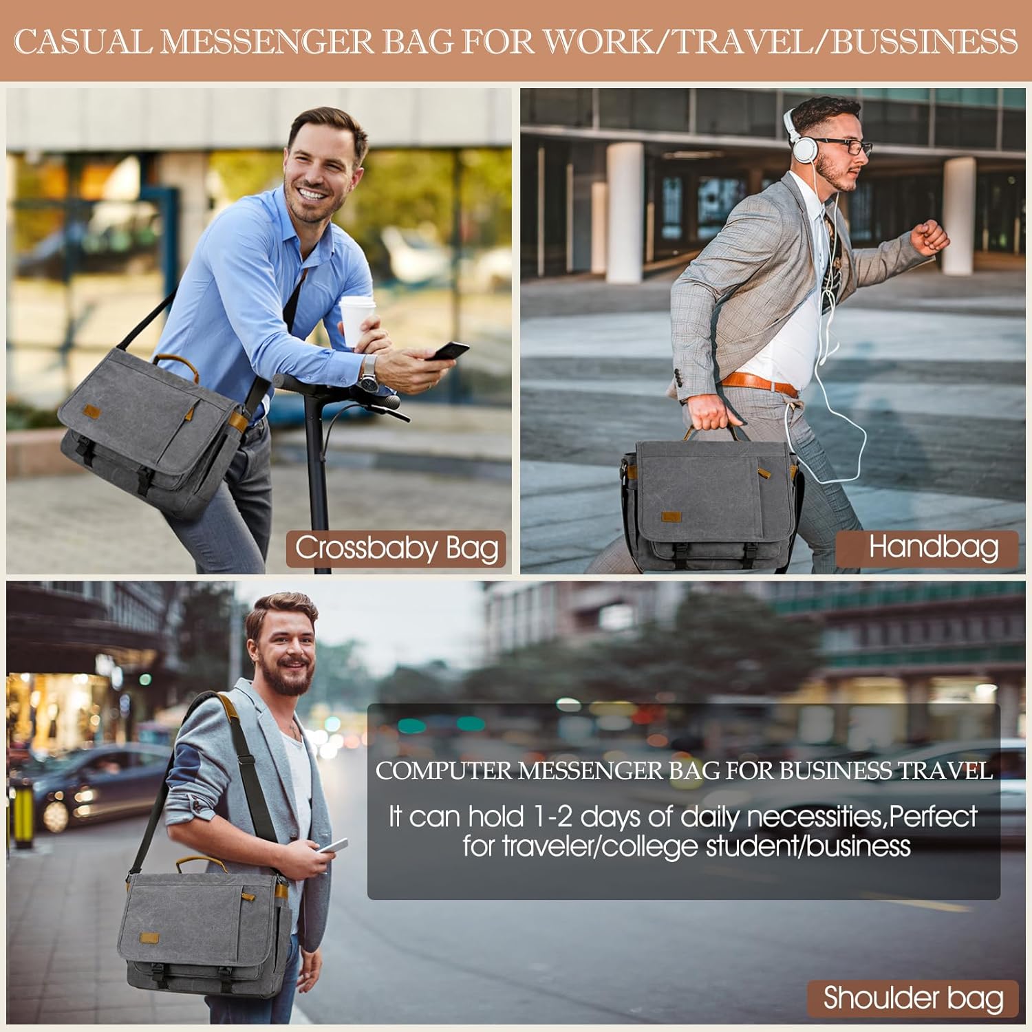 17.3 Inch Messenger Bag for Men: 2PCS Laptop Bag PU Leather Canvas Work Briefcase Large Office