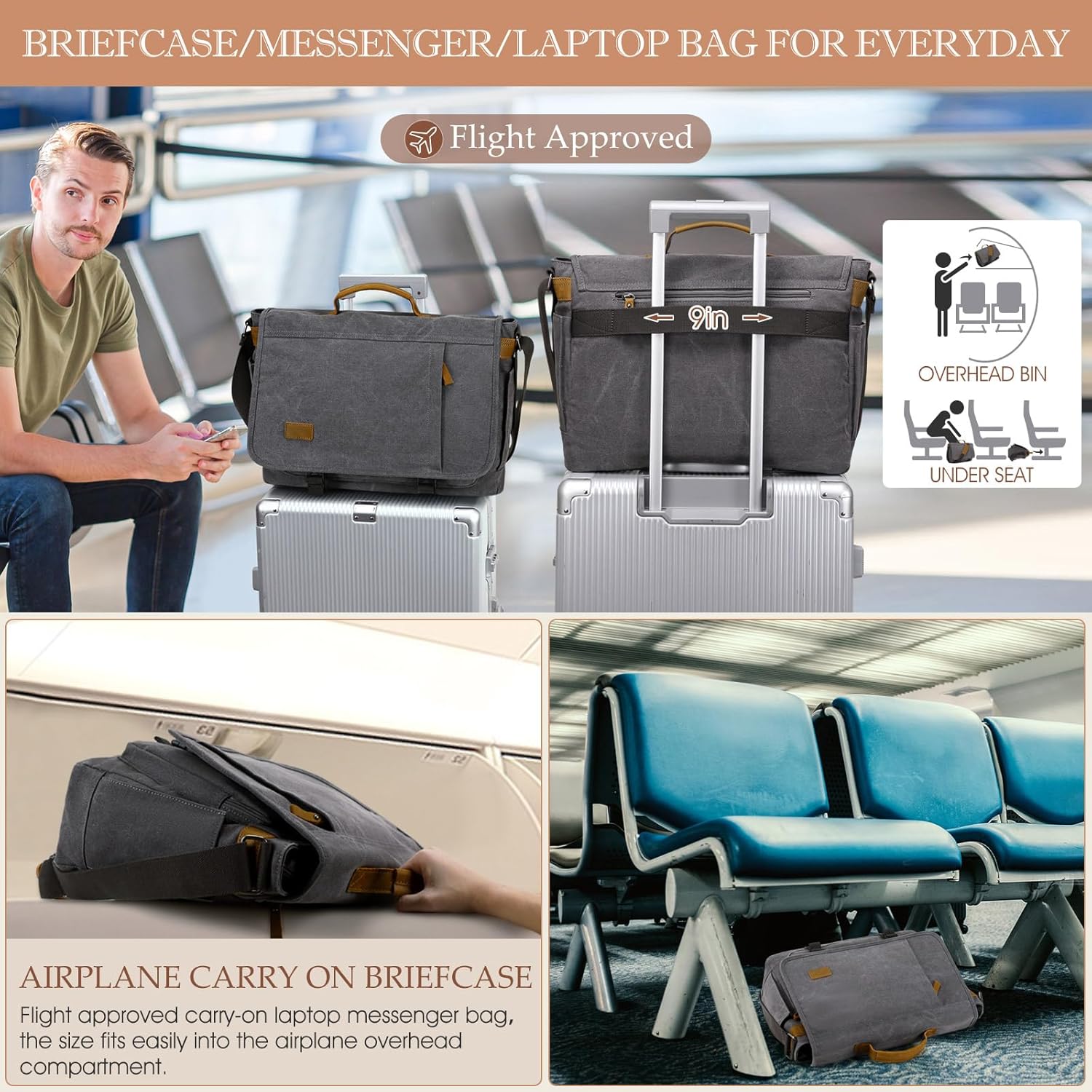 • [ ANTI-THEFT DESIGN & LUGGAGE SLEEVE ] Laptop briefcase is designed with 2 strong buckles on the flap and the zippered pocket is close to user which is secure for all your valuables. Designed for friendly airplane travel, this carry on bag with sleeve is perfect for carrying on board during air travel for men/women.