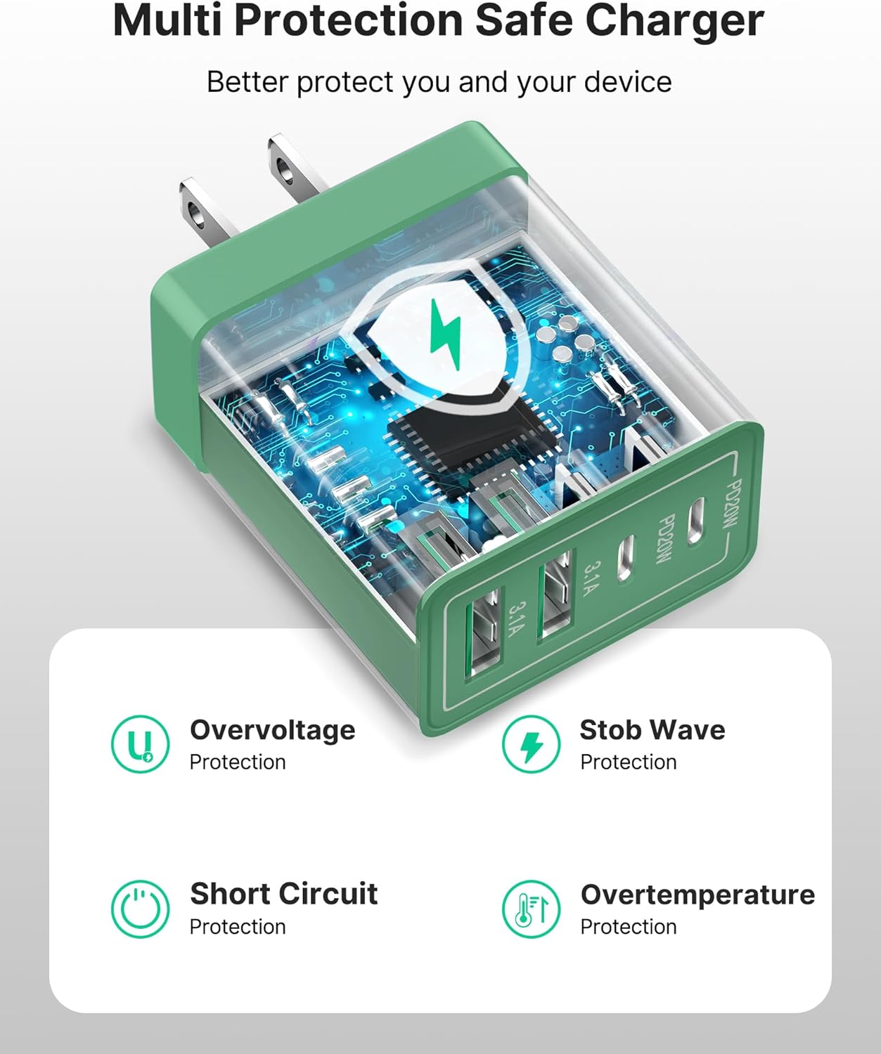 • 【Complete Safety & Reliability】:Certified RoHS,CE & FCC,protect devices from overheated and over-currents,overcharging,and short circuits,charging will be automatically stopped when the battery is full. The USB C Wall Plug is made of ABS + PC fireproof material,ensuring that your digital device always charges safely.