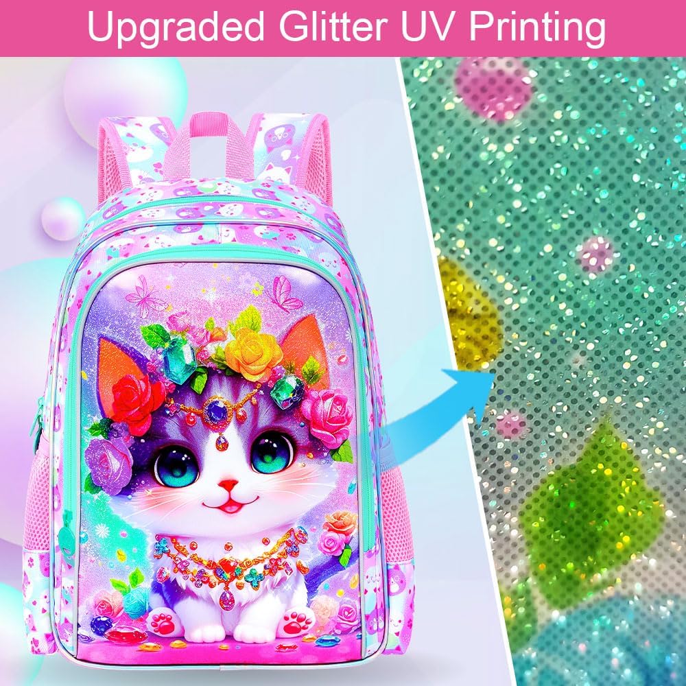 • Stunning Design: The cat backpack for girls is adorned with a unique diamond print, upgraded UV technology enhances the colour level and texture, carry it making your child shine like a diamond.