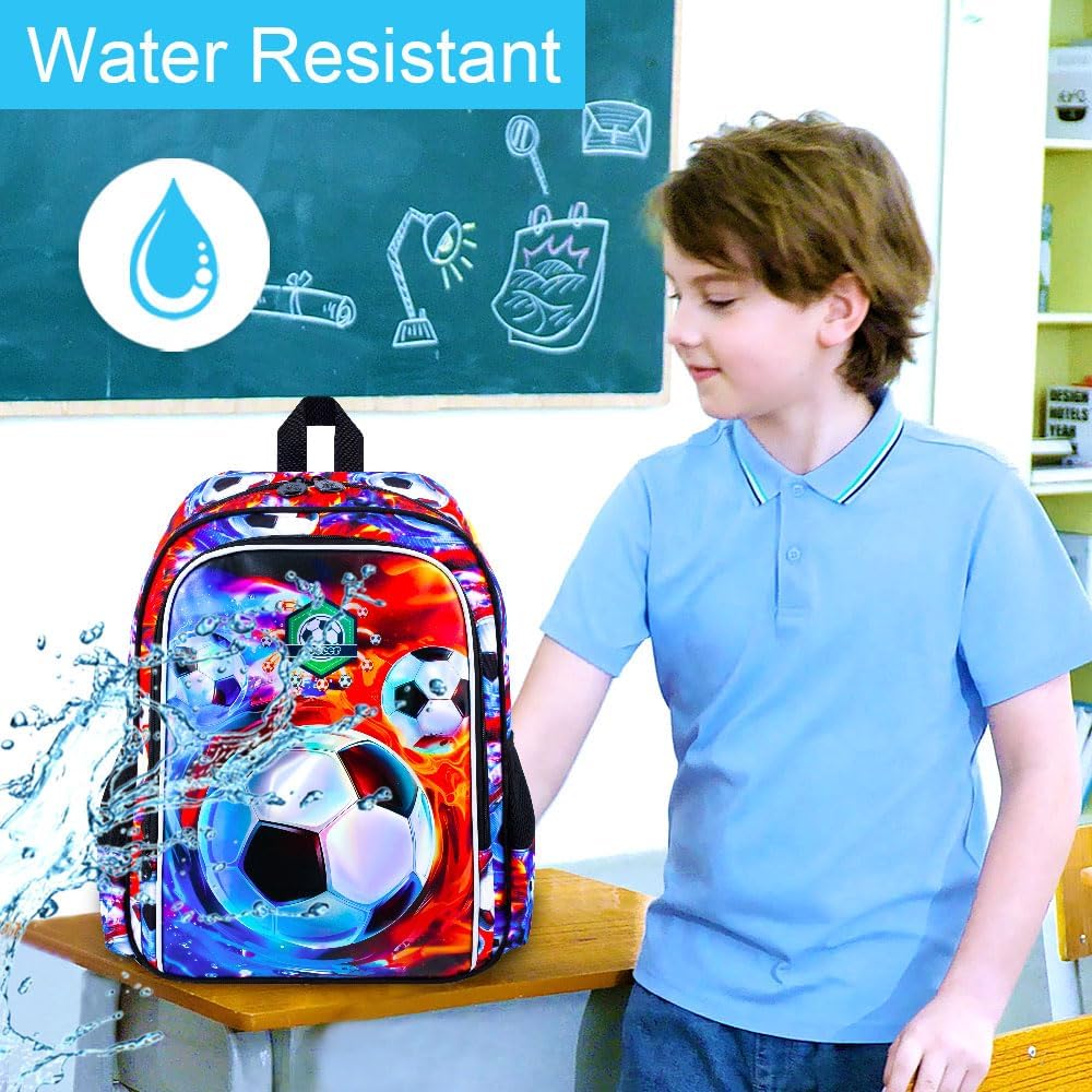 • Boys Backpack 3 in 1: Includes a soccer backpack for boys(16"x 12"x 5.5"In) + a lunch box (9"x 8.5"x 3"In) + a pencil bag. Can be given as a surprise gift to kids on Christmas/Birthday.