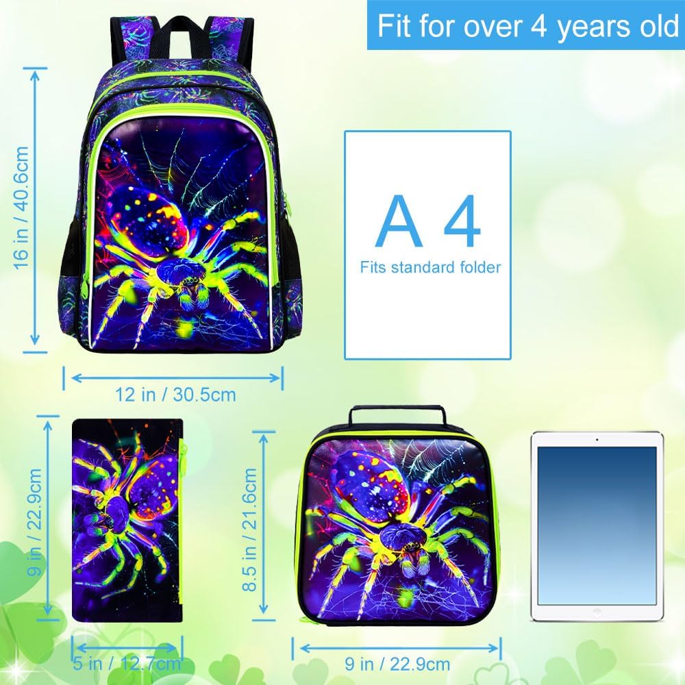 • Boys Backpack 3 in 1: Includes a spider backpack for boys(16"x 12"x 5.5"In) + a lunch box (9"x 8.5"x 3"In) + a pencil bag. Can be given as a surprise gift to kids on Christmas/Birthday.