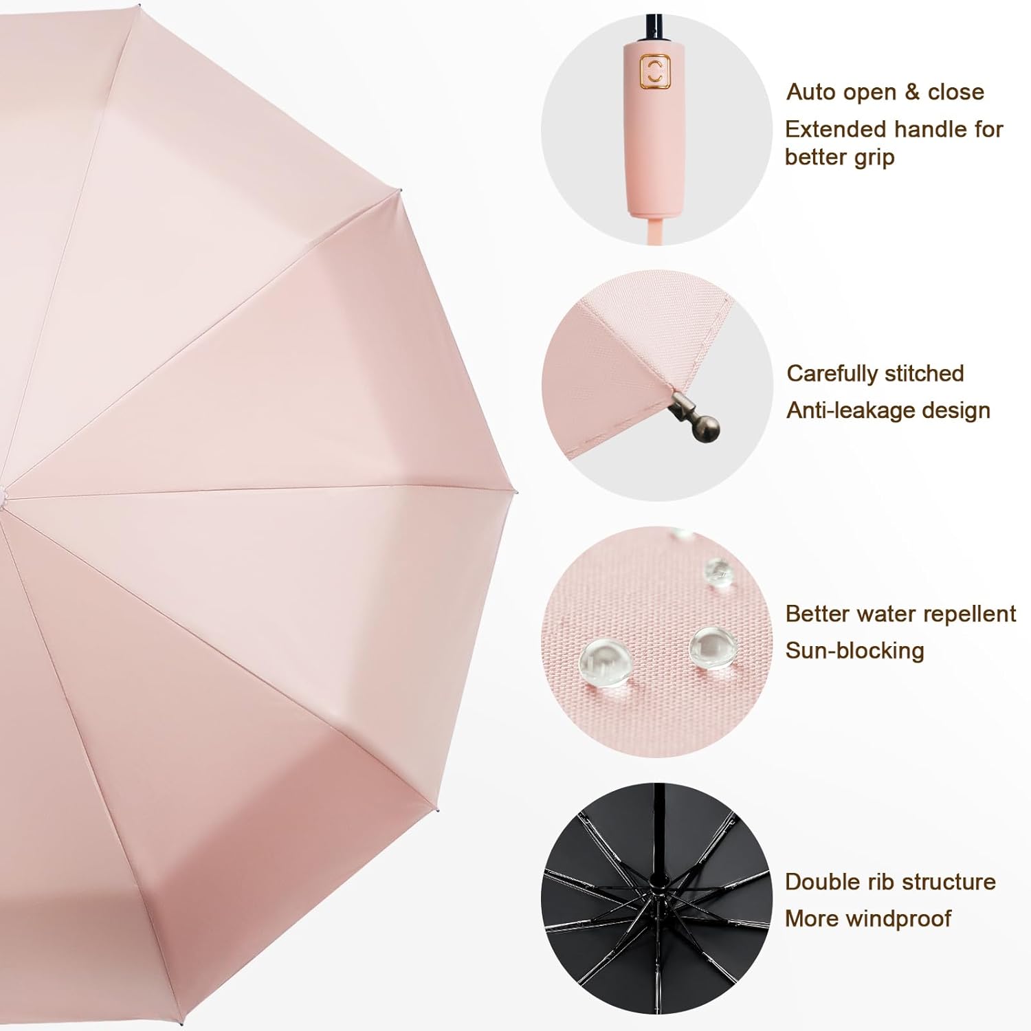 2-Pack Windproof, Waterproof, UV-Blocking Portable Travel Umbrella, Compact Sun & Rain Folding Umbrella, Double Rib Structure, Large Auto Open and Close Car Umbrella