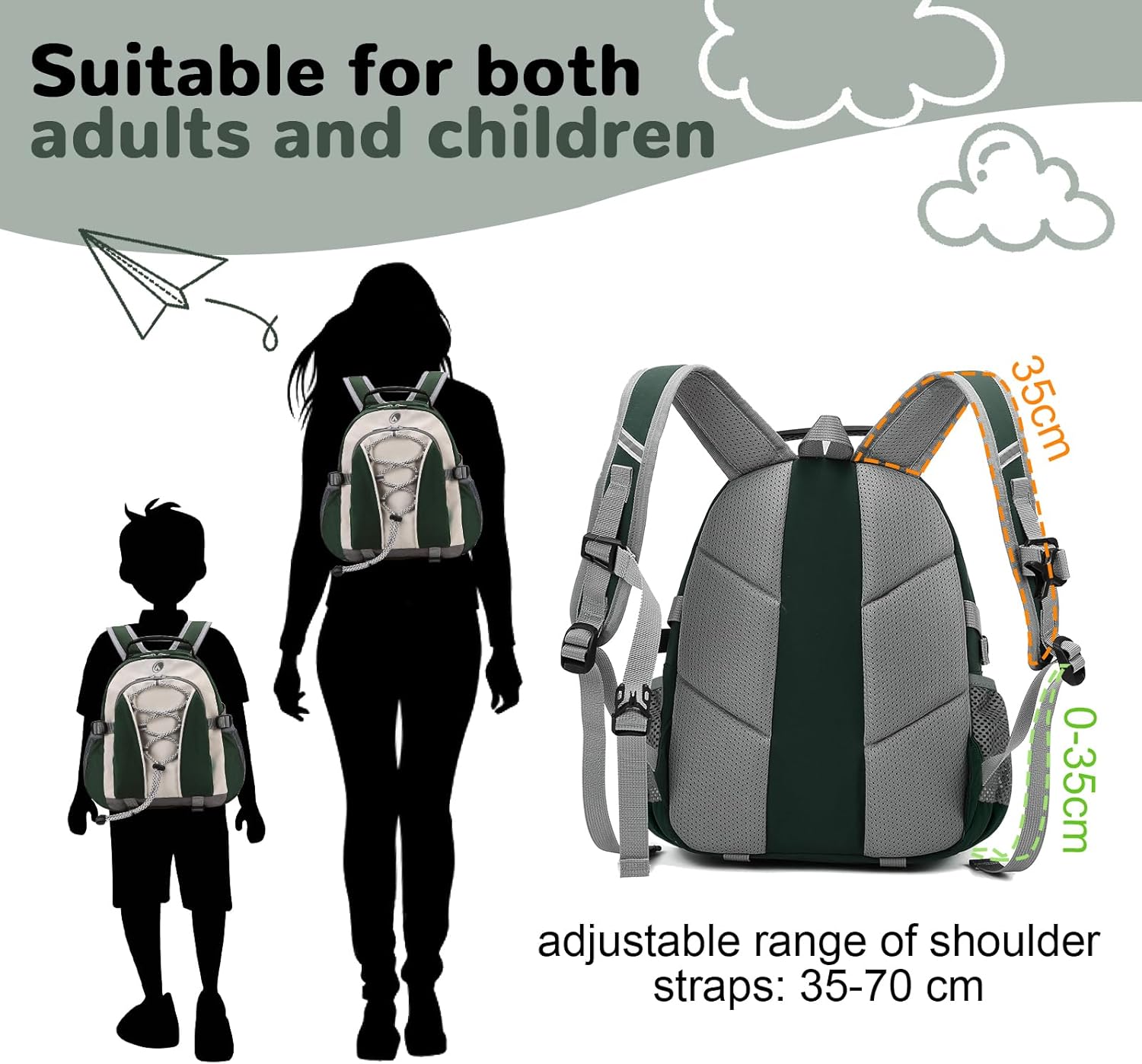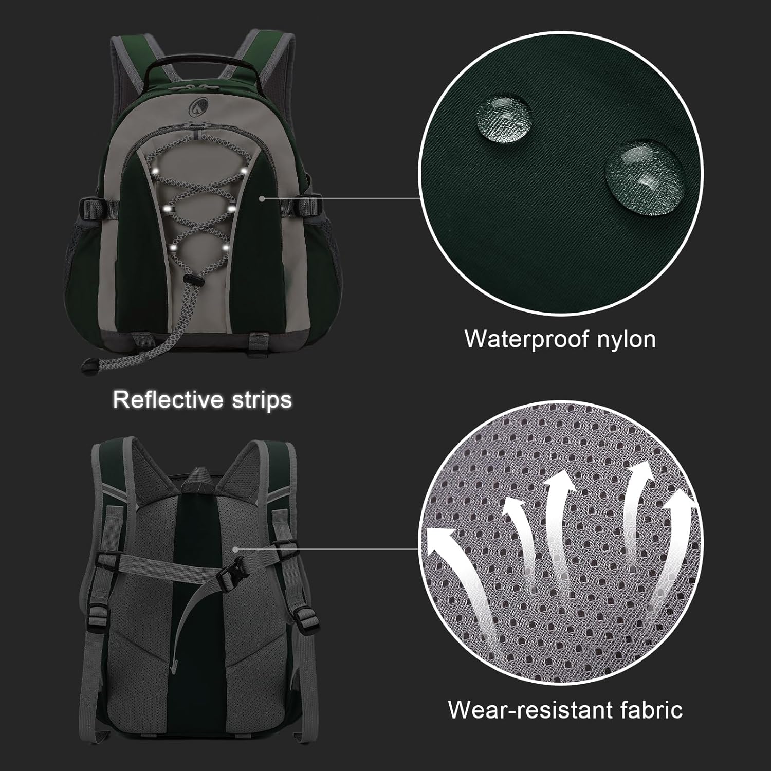 10L Mini Kids Hiking Backpack with Chest Strap for Girls Boys, Small Hiking Daypack with Padded Straps for Men Women, Green