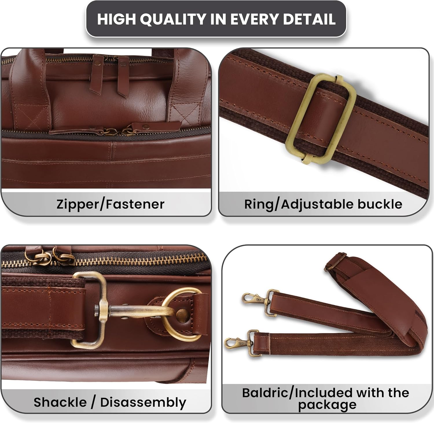 • ✔️ 1-YEAR WARRANTY – IDEAL GIFT FOR MEN: The Leaflite leather briefcase for men is a perfect gift for birthdays, Christmas, Father's Day, or Valentine’s Day. It includes a 1-year hassle-free replacement warranty against any manufacturing defects