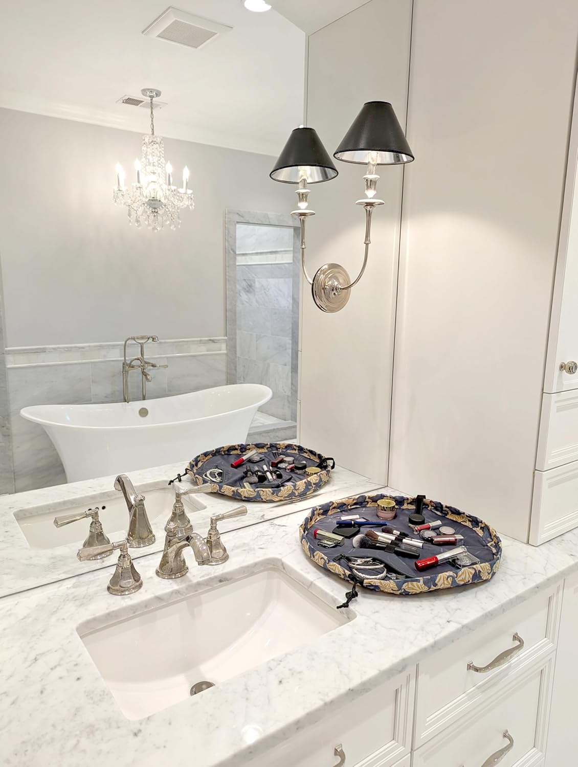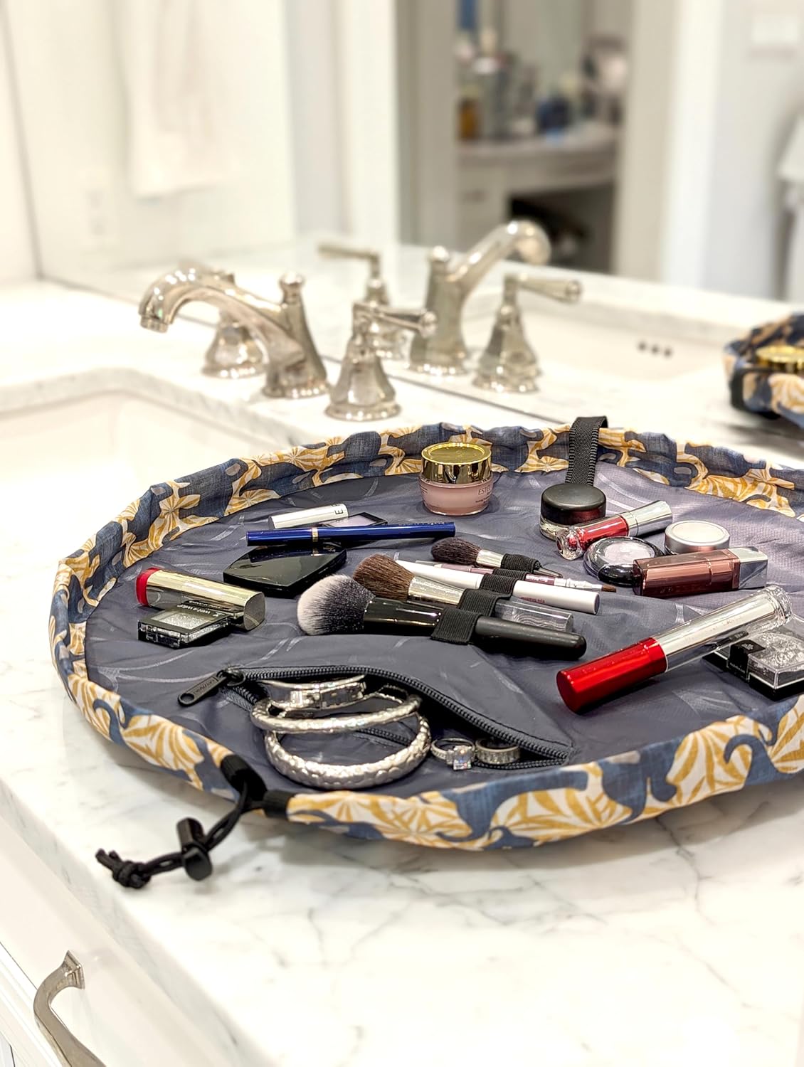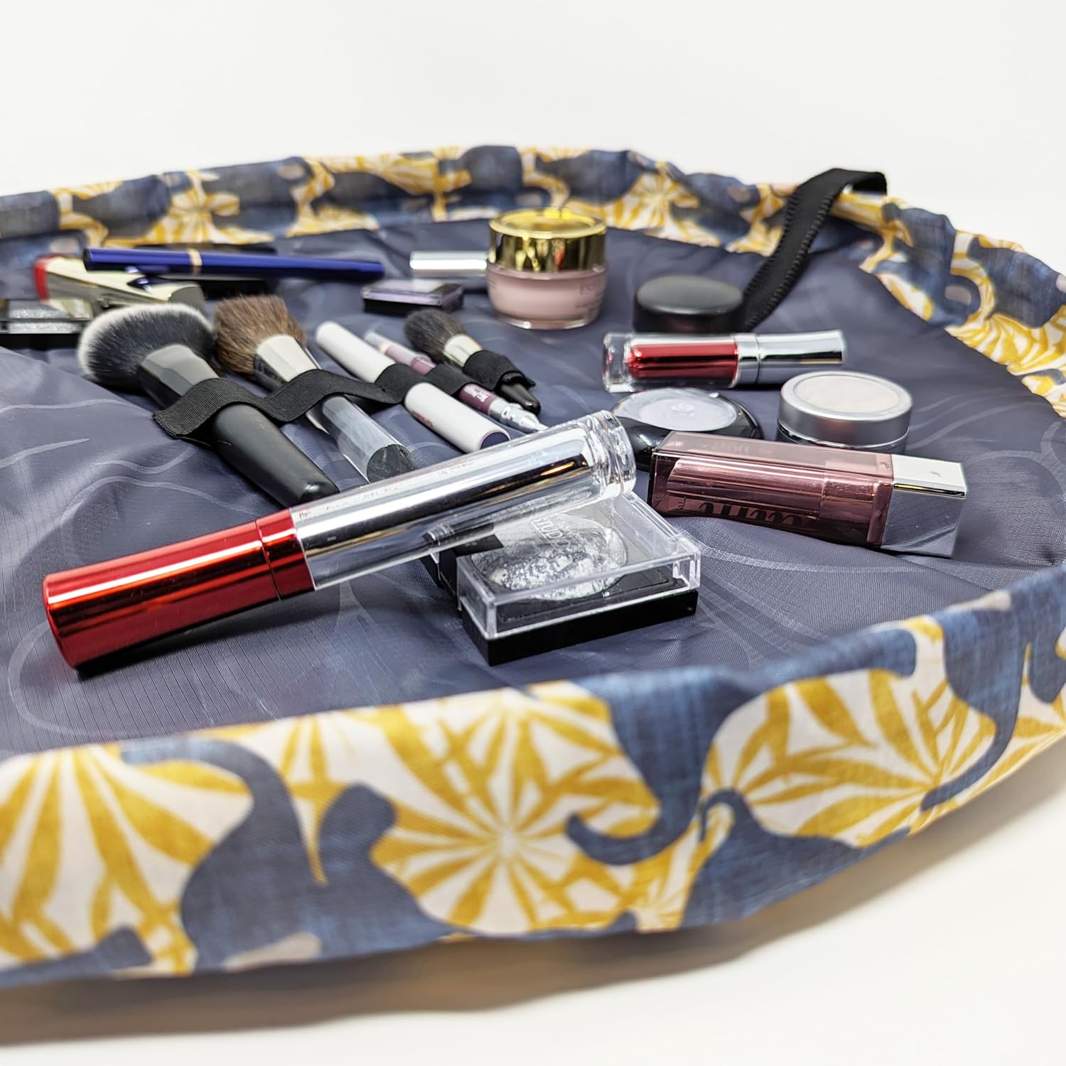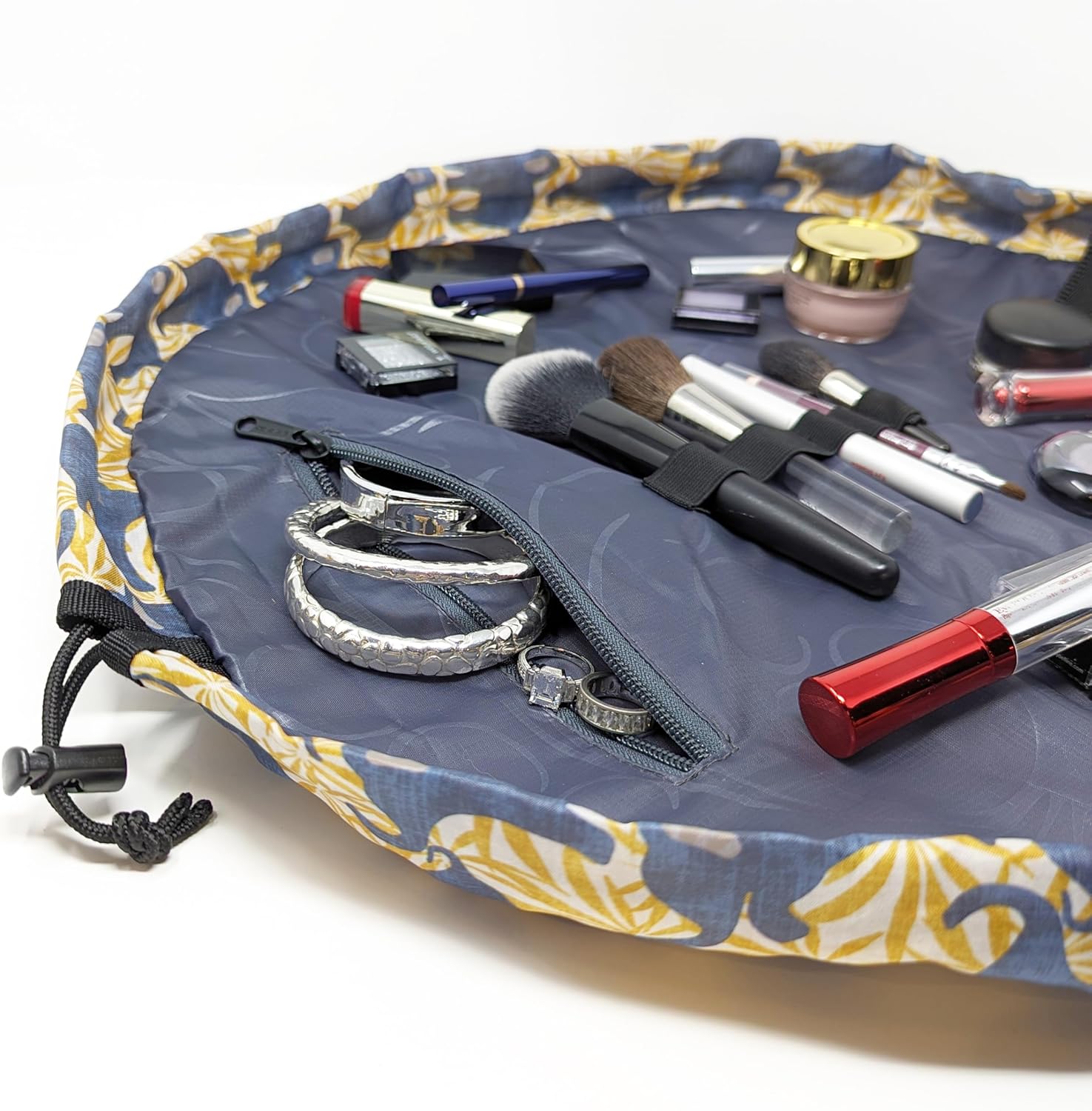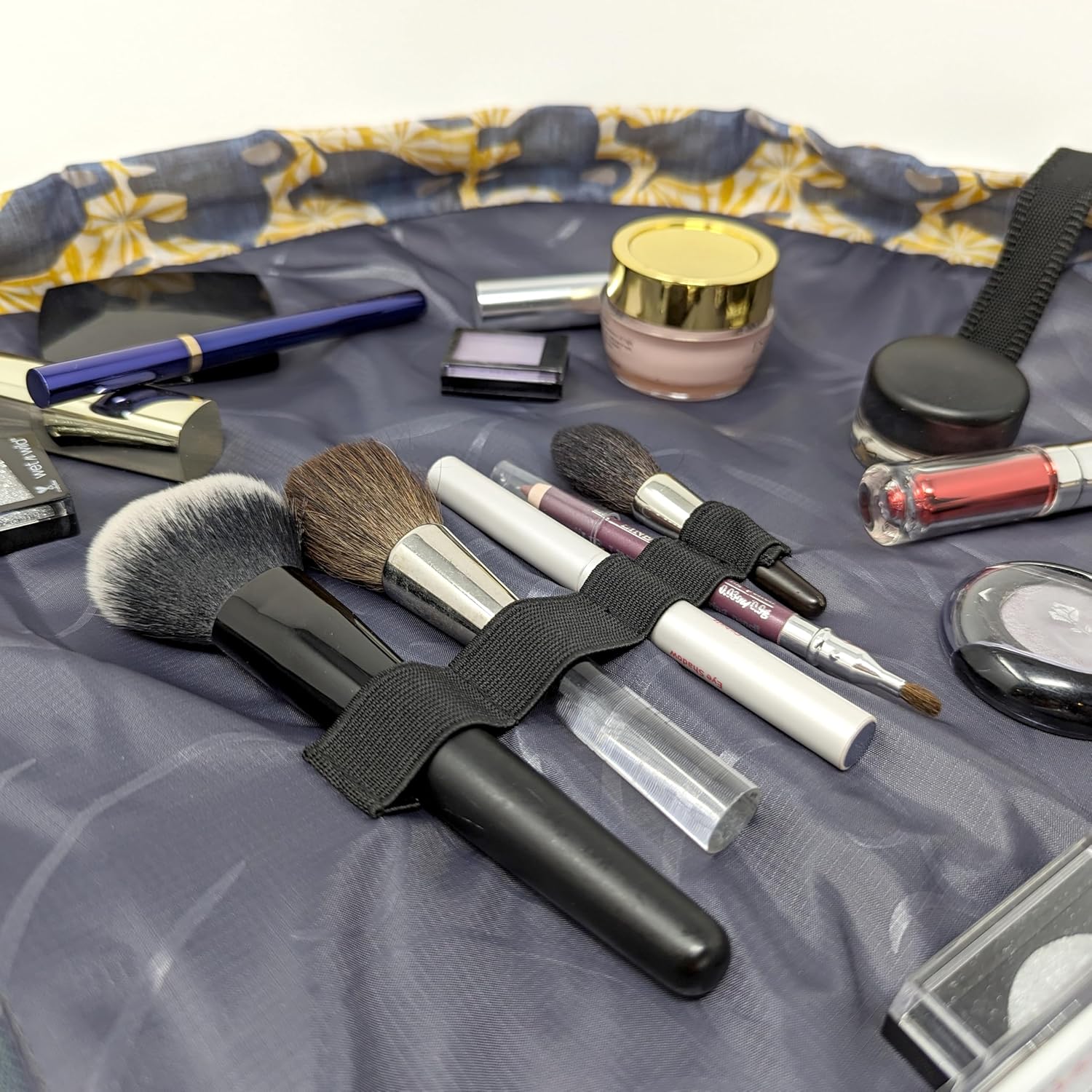 • FAST CLEANUP, NO MESS: Lay flat to instantly access all your makeup, then cinch closed for effortless cleanup – no more digging through cluttered bags or bathroom counters.