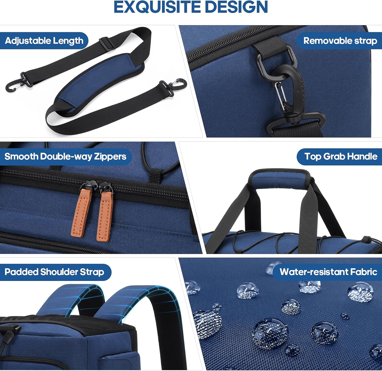 Gym Bag for Men and Women with Shoe & Laptop Compartment, 3-in-1 Sports Travel Duffel Bag Anti-Theft Weekender Carry-On Backpack for Airplane & Workout, Overnight Travel Bag,35L (Blue, Medium)