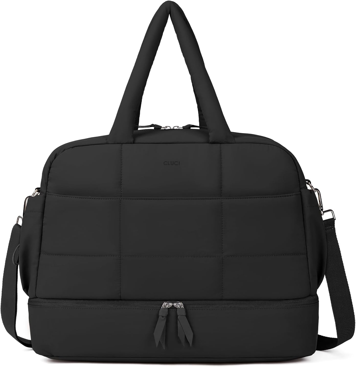 CLUCI Weekender Travel Bag for Women Puffer Tote Bag Carry On Duffle Overnight Bags with Shoe Compartment