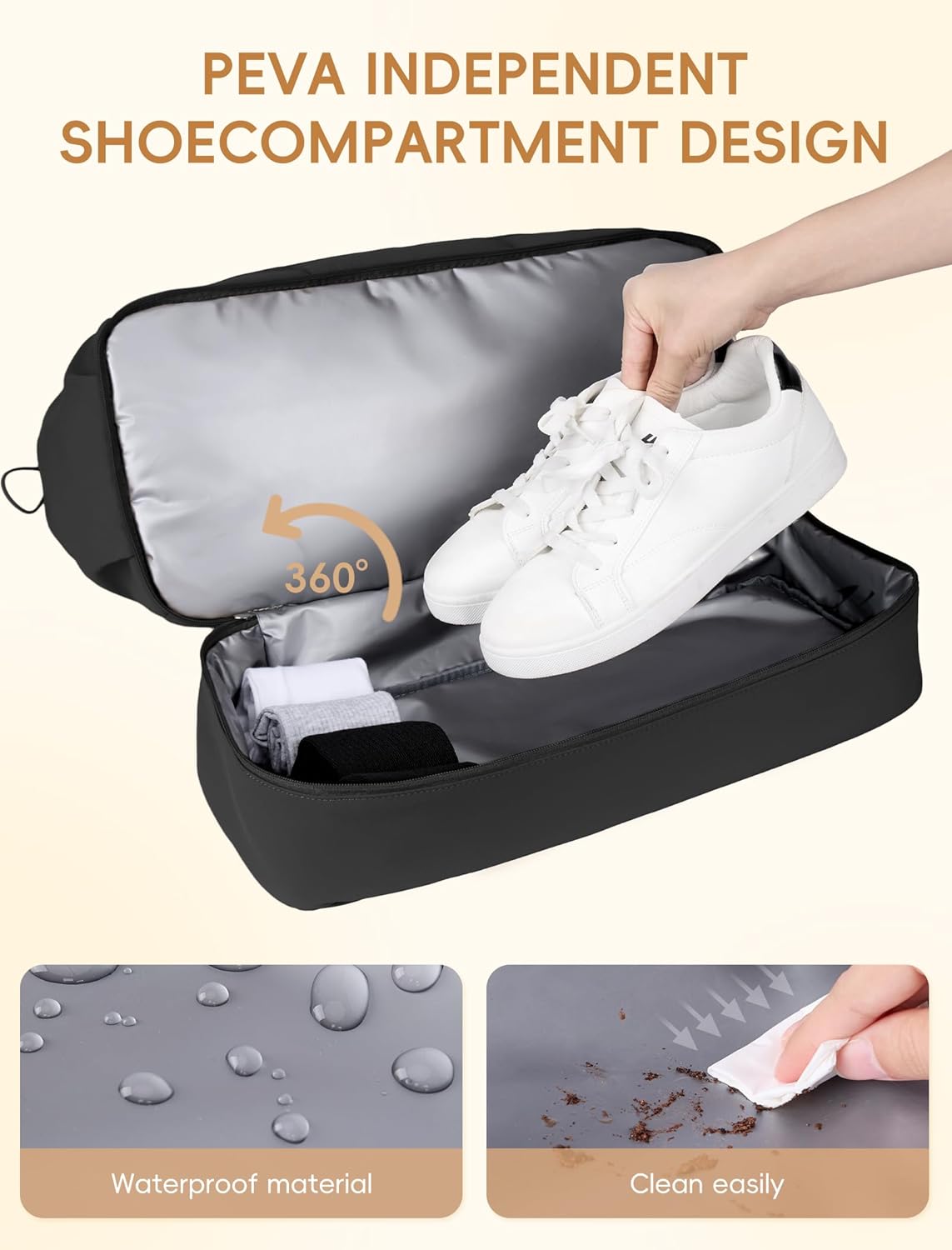 • Multi-pocket design: The travel duffel bag has 1 independent shoe compartment made of PEVA material, which is waterproof and stain-resistant. There are 2 mesh pockets in the main compartment, 1 PVC dry and wet separation bag, and 1 computer compartment that can accommodate a 15.6-inch laptop. The exterior is equipped with 2 side pockets and 1 front zipper pocket.