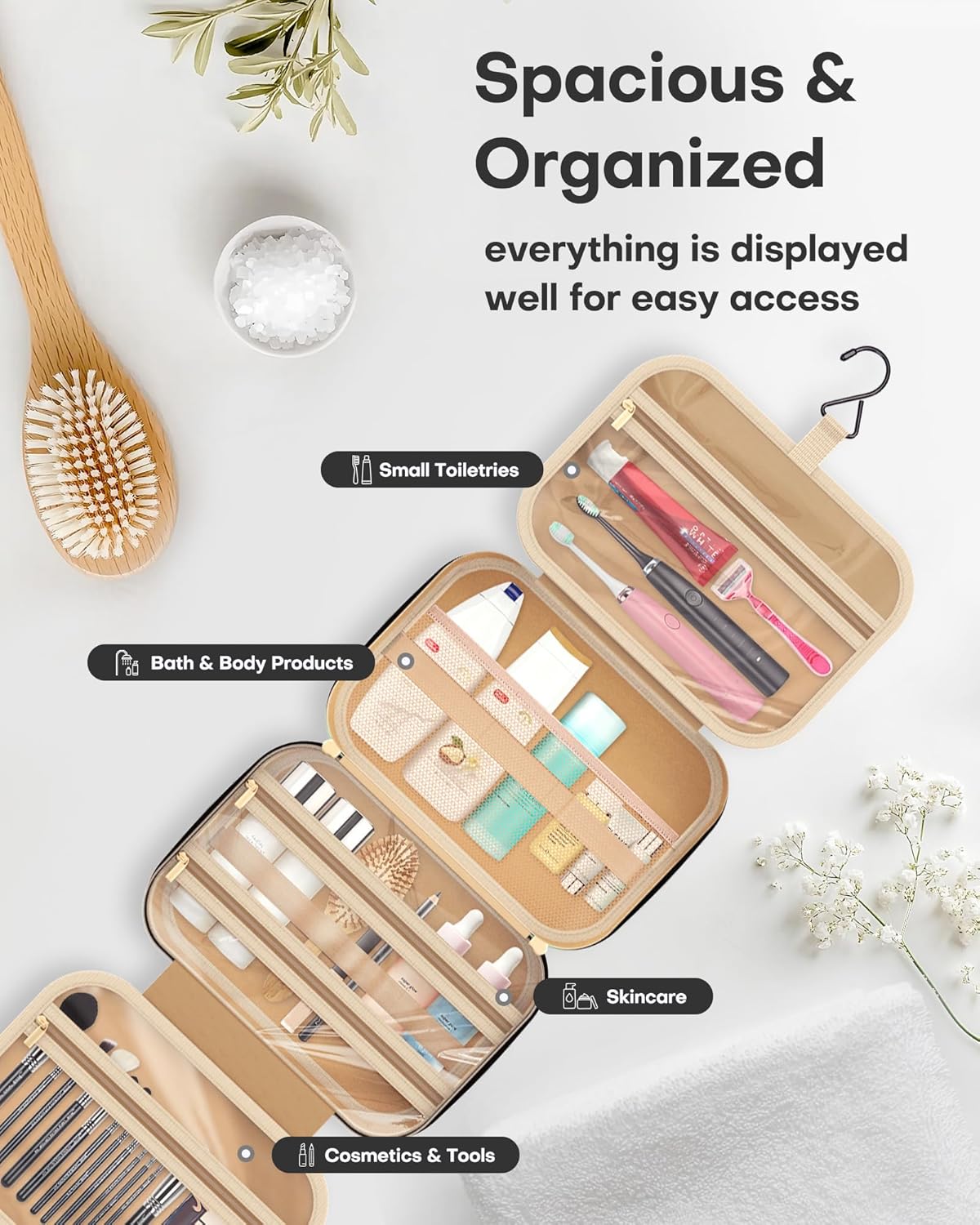 • EASY TO HANG ANYWHERE: Maximize your space with the HOTOR travel toiletry bag for women. Its premium metal hook allows for easy hanging on towel racks, coat hooks, or anywhere convenient. The retractable hook design keeps it neat and tidy when not in use. This space-saving toiletry bag keeps your toiletries and cosmetics easily accessible, making your travel routine a breeze.