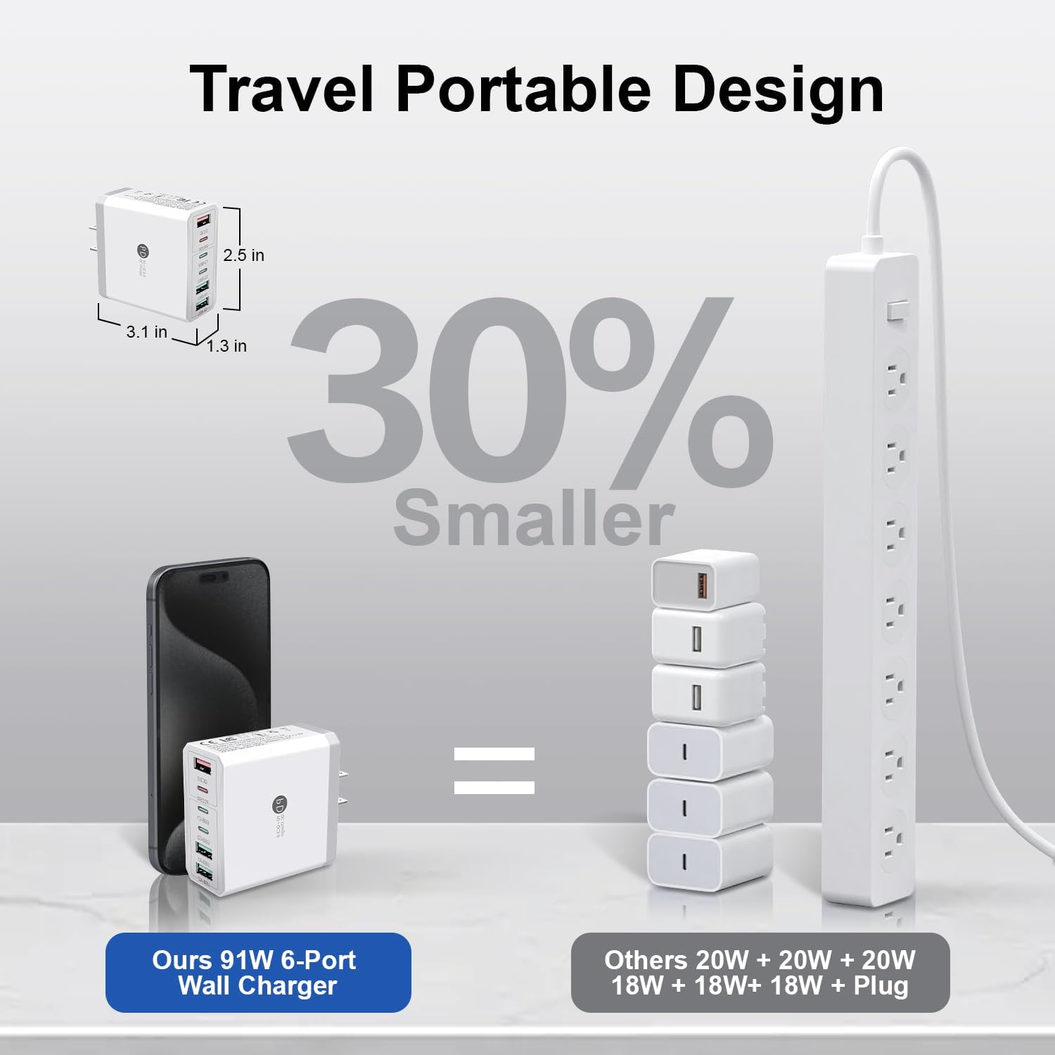 USB C Charger Block:100W 6-Port Fast Charging Blocks Wall Charger, Type C Charging Brick USB Cube Power Adapter for iPhone 16/15/14/13/12/11 Pro Max, Cell Phones - Lightweight & Travel-Friendly Design