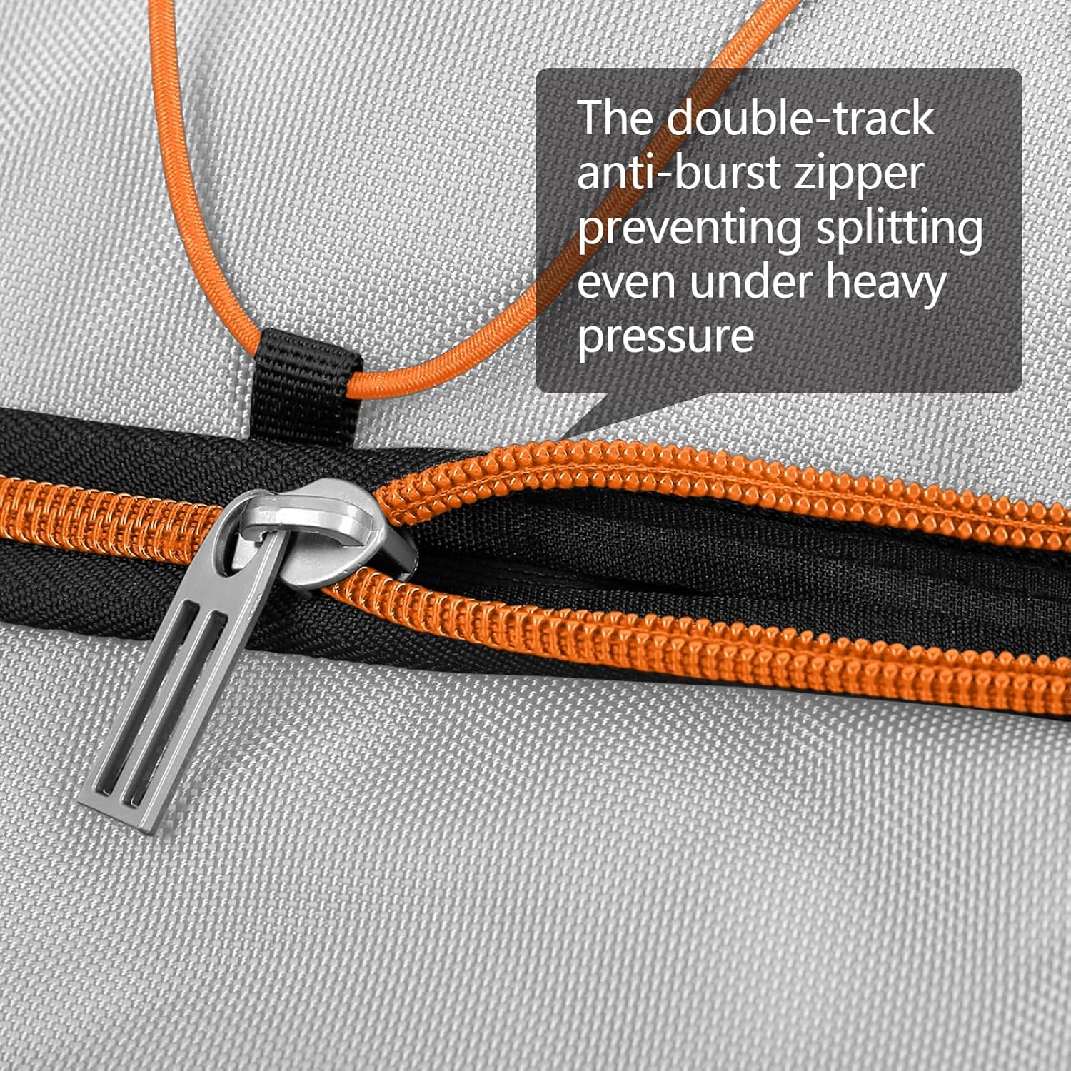 • Comes with two rigid partitions with 3 mesh pockets & 3 stretch pockets creates 3 separate large compartments