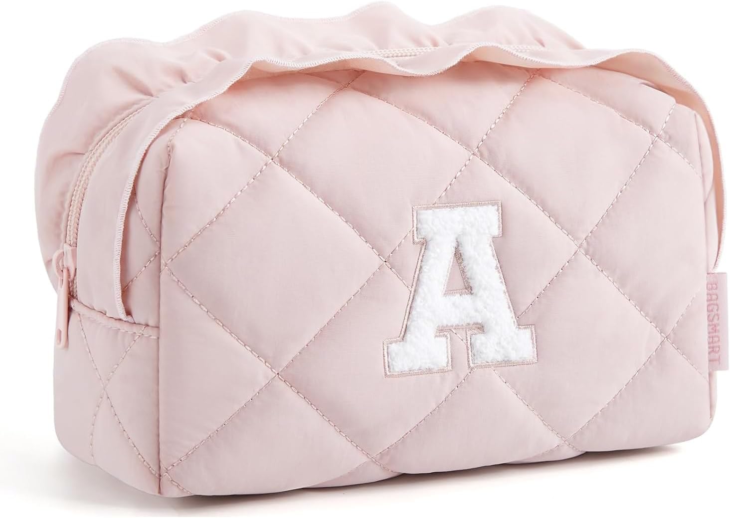 BAGSMART Elegant Roomy Makeup Bags (Initial-A-Pink)