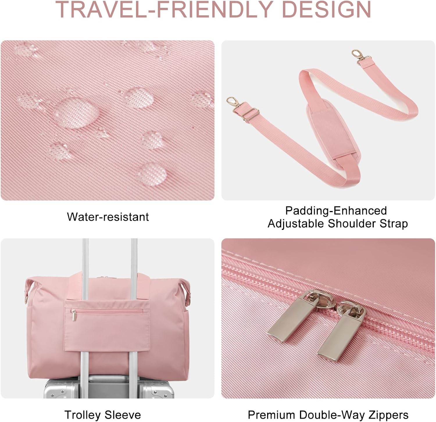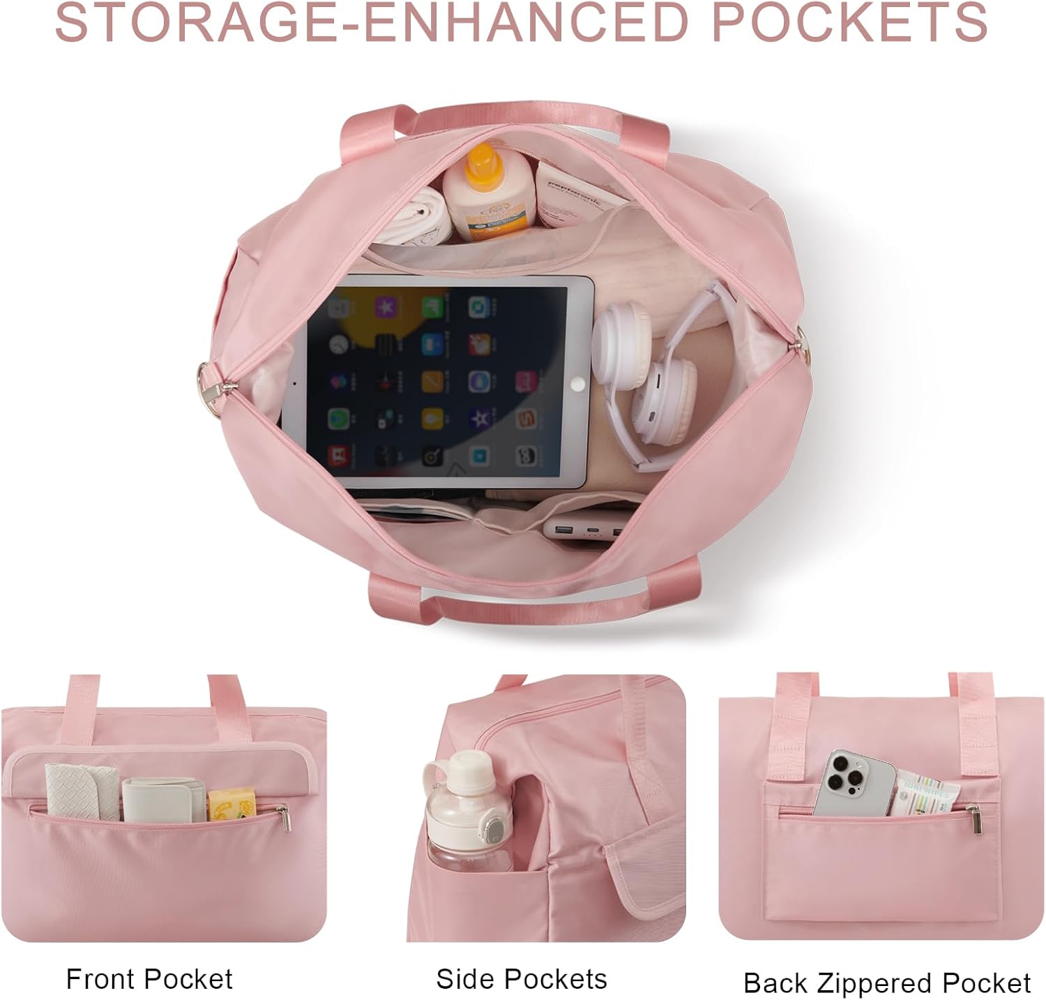 • 【Travel-Ready Toiletry Pouch Included】A dedicated toiletry pocket keeps your skincare, makeup, and toothbrush organized and within reach—perfect for quick, stress-free weekend getaways.