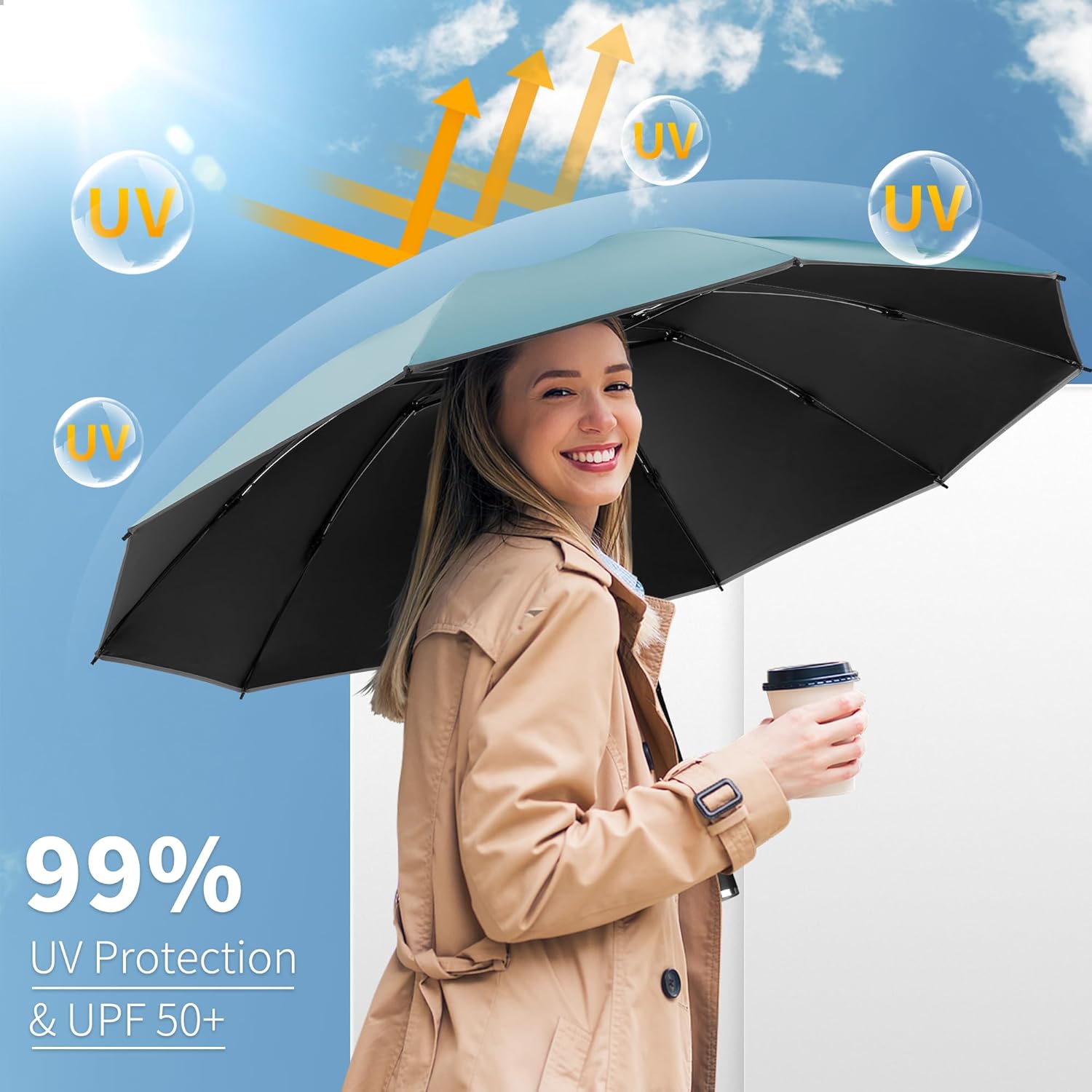 • 【UV Umbrella as Present】Boasting a tightly woven coating, our sun umbrella uv protection comes with upf 50+ and admirable light-blocking capability, reflecting 99% uv rays for a cool shade on hot summer days. Moreover, the practical large umbrellas for rain with various color selections are ideal festival or birthday gifts for your friends and family.
